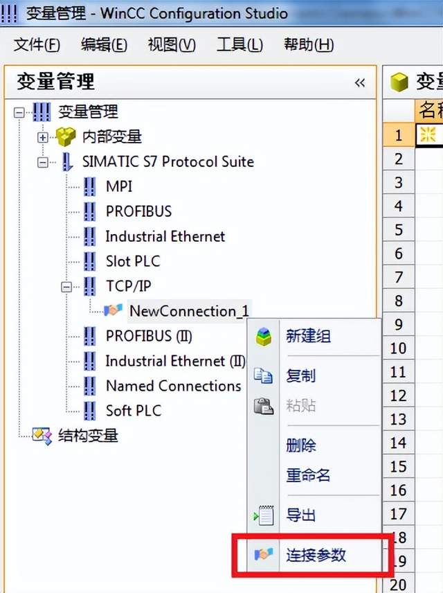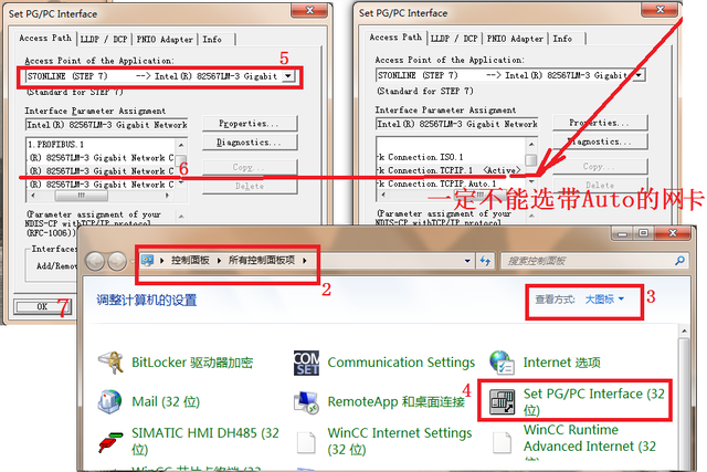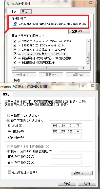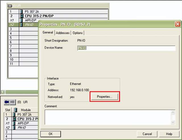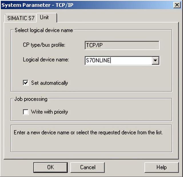 前提条件: 通过以太网实现PLC系统与WINCC通讯的前提条件是PLC系统配备以太网模块或者使用带有PN接口的PLC,以太网模块列表如下表所示: 表1-1 本文档下列步骤应用CPU 315-2PN/DP型号的PLC,使用普通以太网卡连接。 1.1STEP7硬件组态使用STEP7编程软件对PLC系统进行软件组态,在Hardware界面内插入实际的PLC硬件,如下图1-1所示: 图1-1 在PN-IO槽双击弹出PN-IO属性对话框,如图1-2所示: 其中,Interface中的参数Networked(已连网)必须设置为Yes。 图1-2 点击图1-2属性对话框,弹出网络参数设置对话框,如图1-3所示: 图1-3 点击New按钮,新建一个工业以太网络,输入该PN模块的IP address(IP地址)和Subnet mask(子网掩码),一般情况下不设置网关。 当使用的是CPU和以太网模块通讯时,双击以太网模块,会自动弹出以太网模块的属性信息,设置以太网通讯模块的IP地址和子网掩码。方法与PN-IO的属性设置相同,如下图所示:注意如果要使用TCP/IP通讯方式,必须启动IP Protocol being used,设置IP地址与子网掩码,如图1-4所示: 图1-4 将组态下载到CPU,则PLC方面设置完成。对于第一次使用以太网通讯,必须保证首先使用MPI或者PROFIBUS的通讯方式,将设置好参数的组态下载到目标PLC,此后即可通过以太网的方式进行程序监控和项目下载。 1.2设置IP地址与通讯检测设置安装有WINCC计算机的windows操作系统的TCP/IP参数,查看本地网卡名称并设置IP地址。 图1-5 将WinCC组态计算机的IP地址设置为和PLC以太网通讯模块或者PN-IO的IP地址保证是一个网段,注意子网掩码的设置,如图1-6所示: 图1-6 通过在程序à运行中键入CMD进入DOS界面,使用网络命令PING测试以太网通讯是否建立,PING的命令如下:ping 目标IP地址 –参数 如下图1-7所示: 图1-7 此例中,PN-IO的IP地址为192.168.0.100 子网掩码:255.255.255.0; 组态计算机的IP地址为192.168.0.77 子网掩码:255.255.255.0; 此处显示表示以太网通讯已经建立,并且状态良好。 注意:如果此处不能Ping通PLC的PN端口或者以太网模块,则通讯不可能建立;若要通讯成功,必须保证实际的物理以太网通讯正常。 1.3设置Set PG/PC Interface通讯接口设置,进入操作系统控制面板,双击Set PG/PC Interface。 在Access Point of the Application:的下拉列表中选择S7ONLINE ( STEP7 );然后在Interface Parameter Assignment :的列表中,选择图1-6中的本地计算机网卡。由于网卡名称较长,需要拖动水平滑块到最右侧。 选择 .TCPIP.1结尾的本地网卡,一定不能选择.Auto.1的网卡。 确认后在Access Point of the Application:的下拉列表中显示: S7ONLINE ( STEP7 ) à 本地网卡.TCPIP.1 设置完成后如图1-8所示。 注意:使用的网卡不同,显示会有不同,请确保所选条目为正在使用的本地以太网卡的名称。 图1-8 点击Diagnostics按钮后,可以对该网卡进行诊断,确保其正常工作,如图1-9所示: 图1-9 1.4添加驱动程序和设置系统参数打开WINCC工程在Tag Management-->SIMATIC S7 PROTOCOL SUITE->TCP/IP 右键单击TCP/IP,在弹出菜单中点击“系统参数”,如图1-10所示。 图1-10 弹出System Parameter- TCP/IP对话框,选择Unit标签; 设置Logic device name(逻辑设备名称):S7ONLINE,如图1-11所示。 图1-11 1.5添加通道与连接设置添加驱动连接,设置参数。打开WINCC工程在Tag Management-->SIMATIC S7 PROTOCOL SUITE->TCP/IP,右键单击TCPIP,在下拉菜单中,点击“新建连接”,在握手图标后面输入连接的名称。 在连接名称上右键点击“连接参数”,如图1-12所示, 图1-12 在弹出的Connection Parameter- TCP/IP属性对话框中输入参数,如图1-13。 图1-13 IP Address:输入在STEP7图1-3中已经设置的PN-IO或者以太网模块的的IP地址; Rack Number:CPU所处机架号,除特殊复杂使用的情况下,一般填入0 Slot Number:CPU所处的槽号 注意: 如果使用S7-300的PLC,那么Slot Number的参数为2, 如果是S7-400的PLC,那么要根据STEP7项目中的Hardware软件查看CPU插在第几号槽内,不能根据经验和物理安装位置来随便填写,可能的参数为2、3、4(主要是依据电源的大小来决定)否则通讯不能建立。 最后点击确认,则通讯参数的设置已完成。 |