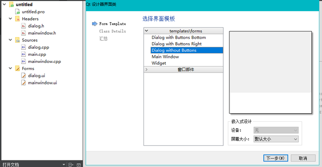 在上一篇博文 《C/C++ Qt 标准Dialog对话框组件应用》 中我给大家演示了如何使用Qt中内置的标准对话框组件实现基本的数据输入功能。 但有时候我们需要一次性修改多个数据,使用默认的模态对话框似乎不太够用,此时我们需要自己创建一个自定义对话框,这类对话框也是一种窗体,所以可以在其上面放置任何的通用组件,以实现更多复杂的开发需求。 目前自定义对话框与主窗体的通信有两种方式,一种是通过函数实现通信,另一种则是通过信号实现通信,我们以通过函数通信为基础,解释一下如何实现跨窗体通信。 首先需要创建一个自定义对话框,对话框具体创建流程如下 - 选择项目 -> AddNew -> QT -> Qt设计师界面类 -> 选择空白Dialog -> 命名为Dialog保存