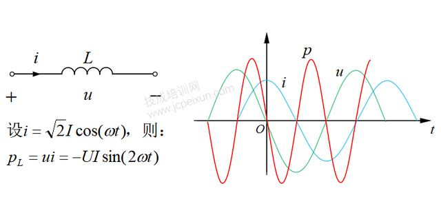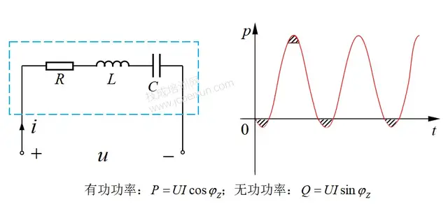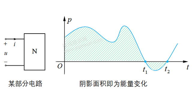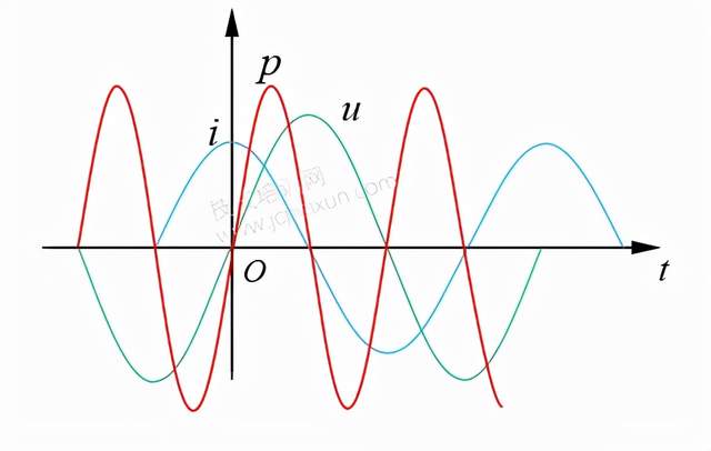 接触过交流电的,我想,对“无功”这个词都不陌生吧?但能真正理解“无功”的人有多少,就不得而知了,想来也是不多的。今天,我就来给大家捋捋“无功”的那些细枝末节吧。 相对于把无功功率理解为“无用的功率”,我更倾向于把它理解为“无耗能的功率”。无功功率,可以说是一个功率,但不完全是功率,它区别于有功功率,与耗能无关。 在正弦交流电路中,无功功率与电感、电容有直接关系。所以,在理解无功功率之前,我们有必要了解一下功率的含义,以及在交流电路中电感元件和电容元件的功率情况。 01 相关功率的定义 不管是热能、电能、机械能等,凡是涉及到能量的变化(做功),基本都离不开功率的分析。功率表示能量消耗(能量变化)的快慢,这就好比跑步,把位移类比为能量变化,跑步速度就是功率,跑得越快,相同时间内,移动距离就越大。 如果以能量变化画一条曲线,如下图1-1所示,那么这条曲线上各点的斜率(即该点切线的斜率)就代表各点的功率。 图1-1 如图1-1所示,随着能量的变化,曲线的斜率也是变化的,换言之,其功率也是随时间变化的,这个变化的功率,就是瞬时功率。 在电路中,电功率有时也用瞬时功率表示,其大小等于该时刻的电压与电流乘积,即p=ui(三者均用小写字母表示),单位为“瓦特[W]”。显然,瞬时功率等于瞬时电压乘以瞬时电流,它们都是瞬时值。 瞬时功率的理解其实很简单,例如在0时刻的瞬时功率为10W,表示该时刻电能的消耗速度为10焦耳每秒(10J/s), t1 时刻的瞬时功率为25W,表示此时电能消耗的速度为25焦耳每秒(25J/s)。 实际上,计量用表计上的功率、家用电器上标定的功率指的都是平均功率,它是瞬时功率的平均值,用大写字母“P”表示,单位也是“瓦特[W]”。 根据功率的定义,电能量W=pt ,类似于跑步距离等于跑步速度乘以时间。如果以瞬时功率变化画一条曲线,那么该曲线与横轴(时间轴)围成的面积就表示能量变化,如下图1-2所示。 图1-2 如图1-2所示,若某部分电路端口的瞬时功率随实际变化,它与时间横轴围成的面积有正有负。在0~t1 时间段,瞬时功率为正值,所以该部分电路的能量变化为正(面积为正值),即吸收能量;在t1 ~t2 时间段,瞬时功率为负值,所以该部分电路的能量变化为负(面积为负值),即释放能量。 当然,如果要计算从0~t2 时间段的平均功率,那么就要把所有能量变化相加(吸收能量为正,释放能量为负),再除以时间,即P=W总 /t 。这就好比求跑步的平均速度,要先求出总位移(往前跑为正,往回跑为负),再除以时间。 看到这里,我相信大家对瞬时功率和平均功率都有了比较清晰的理解,在此基础上,我们再来分析一下正弦交流电路中电感元件和电容元件的功率是怎样的。 02 交流电路中感元件和电容元件的功率 在正弦交流电路中,理想的电感元件和电容元件都是储能元件,即是非耗能元件。所谓“非耗能”,是指在任一周期内,电感元件和电容元件从电源侧所吸收的能量和 为零。那么,它为什么是零呢?希望在看了接下来的内容后,你能给出自己的一份答案。 1、交流电路中电感元件的功率 在交流电路中,电感元件的电压相位超前电流相位90°,它们的波形图如下图1-3所示。绿色波形图表示电压 u ,蓝色波形图表示电流 i 。 图1-3 在图1-3中,电压相位超前电流相位90°,如果看不出怎么超前的,可以这样理解:横轴为时间,随着时间的变化,在180°区间内,电压波形先达到最大值,电流后达到最大值,两个最大值的跨度为90°;或者说,电压先达到过零点(斜率为正),电流后达到过零点(斜率为正)。 电感元件中,瞬时电压与瞬时电流波形图已知,由于瞬时功率p=ui ,可以得出电感元件的瞬时功率波形如图1-3中的红色曲线所示。其实这个功率是有一个计算过程的,但比较复杂,我就不再展开讲解了,大家感兴趣的可以去补一下三角函数的知识。 把图1-3中电感元件的瞬时功率波形图单独显示,如下图1-4所示。可以看到,电感元件的瞬时功率按正弦规律变化,是一个周期量。 图1-4 结合上文提到的能量与功率曲线的关系,从图1-4中也可以看到,电感元件在一个功率周期内,会从电源吸收能量(正半面积),也会对电源释放能量(负半面积),由于曲线的对称性,正半面积的大小恰好等于负半面积,这表明,电感元件所吸收的能量全部又释放回去,一点都不留。这就是电感元件的非耗能特性,电感元件只和电源之间进行能量交换,而不会像电阻元件那样把电能转化为热能、光能等从而消耗掉。电感元件的这种吸收能量又释放能量的特性称为储能特性。 基于图1-4,我们可以计算一下电感元件的平均功率,基于其瞬时功率的周期性,每一个周期的能量变化过程都是一样的,所以我们任取一个周期计算即可。 其实,不用计算,我想大家也知道,电感元件的平均功率为0。因为在一个周期内,电感的总能量变化为0(吸收又释放),所以平均功率如下图1-5所示。 图1-5 2、交流电路中电容元件的功率 在交流电路中,电容元件的电流相位超前电压相位90°,它们的波形图如下图1-6所示。绿色波形图表示电压 u ,蓝色波形图表示电流 i 。 图1-6 根据电容元件的瞬时电压波形和瞬时电流波形,可以得出电容元件的瞬时功率波形如图1-6的红色曲线所示。显然,电容元件的瞬时功率也是一个周期量。 那么,电容元件的平均功率是多少,应该不用我说了吧?没错,也是零。 既然电感元件和电容元件的平均功率都为
