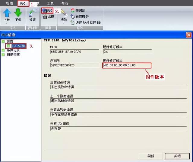 使用 MicroSD 卡更新固件 步骤一: 用普通读卡器将固件文件拷贝到一个空的MicroSD 卡中。固件文件包括:工作文件 “S7_JOB.S7S” 和文件夹“FWUPDATE.S7S”(内 含固件,命名方式:CPU订货号+固件版本号,扩展名为.upd)。 使用记事本打开文件 “S7_JOB.S7S”,应只包含字符串“FWUPDATE”。 图 4:固件文件夹 步骤二: 在 CPU 断电状态下将包含固件文件的存储卡插入 CPU 。 步骤三: 给 CPU 上电,CPU 会自动识别存储卡为固件更新卡并且自动更新 CPU 固件。更新过程中RUN 指示灯和 STOP 指示灯以 2 HZ 的频率 交替点亮。 步骤四: 当 CPU 只有 STOP 灯开始闪烁,表示“固件更新”操作成功,从 CPU 上取下存储卡。 步骤五: 给 CPU 重新上电,在 Micro/WIN SMART 中查看CPU固件版本,如图5所示。 图 5:查看CPU固件版本
