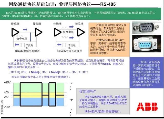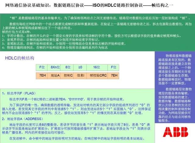 设想直流电源,它的输出端插座接口有三个管脚,分别是正极、负极和接地极。相应地,负载的插头也应当有三个管脚与电源侧一一对应,这样才能正确地获得电能供应。 注意到这里有三个必须满足的条件: 第一是插头和插座管脚的形状、大小和插针直径及长度必须一一对应,否则无法完成接插操作。这一点规定了插头组合的物理结构和管脚定义。 第二是电源的输出电压值必须满足载侧的需求值,否则无法完成电参量的要求。这一点决定了插头组合的电平规范。 第三是电源的输出阻抗与负载的输入阻抗必须匹配,否则不能实现完善的供电。这一点决定了电源的工作性质。 这三点其实就是电源插头组合在物理层面上的规范性协议。 再看通信接口。在有关计算机信息交换的ISO/OSI模型里,物理层是最底层(第一层),它规定了接口的机械外形、接口管脚定义、接口电平和字节格式。 这里的字节格式,指的是一个字节中有几个数据位,有几个起始位/停止位,有几个奇偶校验位。一般地,一个字节有8个数据位,1个起始位(停止位),和1个奇偶校验位。注意:起始位和停止位可以合并。 再看通信接口和通信网络的工作制问题。 当我们拿手机挂电话时,我们发现通信双方在通话的同时也可以接听,这叫做全双工(双向工作制);如果说话的时候不能听,而接听的时候不能说,但任何一方都具有说和听的能力,也即对讲机的通话型式,这叫做半双工。 (说明一下:这些图是我在ABB所做的有关MODBUS通信的PPT节录,比较早了,但基本内容是正确的。这些图供参考。) RS422接口和RS232接口是全双工接口,而RS485则是半双工接口。 对于半双工接口,显然需要有通信的发起者,所以RS485接口和网络一定具有主站和若干从站,并且从站的数量也有规定。一般地,从站的数量是32个。 RS485主站与从站的关系问题,看似只是通信工作制的不同,其本质是通信各方对通信总线控制权的合理分配。 我们再看总线连接问题。 我们还是以电源为例。我们可以从电源引出一条主干线,然后再并联若干个支路并分别送到若干个负载。只要满足电源的功率要求,显然这是可行的。 如果我们用同样的方法来引出RS485的通信线,是否可行呢?答案是否定的。我们必须从通信主站先引一条线到第一个通信子站,再从第一子站引第二条线到第二子站,如此循环直到最后一个子站。在通信线的终端,还要配一个终端电阻。在这条通信线路上,任何一点如果发生断路,则后续的通信链路上的通信也就断了。这种接线方法形象地被称为菊花瓣连接方法,或者链形连接方法,而电源的接线方法则被称为星形连接方法。 电力论坛,赞16 我们发现,从电气接线来看,链路是并联的。但从通信来看,链路是菊花瓣的,属于一个接一个的有秩序的连接。 现在我们可以总结一下了: RS485的总线网络接线方式必须是链形菊花瓣的接线方式,并且属于半双工的通信方式;RS232是点到点的接线方式,属于全双工通信。不管是RS232接口,还是RS485接口,它们必须符合物理层的通信规约。 再看MODBUS-RTU通信协议: 有了物理层通信接口,是不是就能通信呢?答案是否定的。物理层通信接口只是使得通信双方具备通信条件而已。但若双方说的话谁都听不懂,或者通信双方的说话方式及语法结构不相符,显然这也无法通信。 在OSI模型中,物理层之上是数据链路层。MODBUS-RTU协议就是数据链路层协议,只要通信双方都采用了MODBUS-RTU协议,则能确保通信语言是双方都能听得懂的语句格式。 注意这里的词汇“语句”。物理层定义的是字节,相当于语言中的字,数据链路层则把字节组织成语句,也即帧。帧规定了通信双方所用语句的语法结构。 MODBUS也是主从式的。和物理层的总线控制是一样的,这里的主从关系,就是对通信总线的控制权做了规定。主站先下达命令,占用总线;接着把总线空置,交给从站去写回应码;从站完成后,再把总线还给主站。 现在我们来看看ISO的HDLC规定的帧结构,也即通信语句的语法结构,如下: 在MODBUS通信协议下,不同的命令功能码它的帧结构不尽相同。对于读寄存器命令,MODBUS的主站帧结构是:2个字节的地址码,1个字节的功能码,2个字节的数据地址码,2个字节的CRC校验码;MODBUS的从站回应帧结构是:2个字节的功能码,1个字节的回应区字节总数,N个字节的回应数据,2个字节的CRC校验码。 虽然物理层协议与数据链路层协议不同,但数据链路层协议的执行必须建立在通信双方物理层连接已经符合要求,并且已经可以无障碍地实现信息交互的基础上。 这个规则在ISO/OSI模型的七层协议中必须完全彻底地得到执行。在ISO/OSI模型中,通信双方的低层次协议必须为上层协议建立透明的无故障的连接和信息交换关系。也就是说,各层次的上下级关系必须是绝对的。 从数据链路层再往上,就是网络层了。它的任务是构成现场总线的信息交换网。 网络层的功能包括:把通信帧打包成数据分组,然后把数据分组发送给对方。 由于通信双方的网络结构可能不同,于是对于同种网就需要用网桥来连接,而异种网则需要用网关来连接。 网络之间的信道可能有多条。数据分组在发送时有多种路径可以选择。负责选择路径的元件称为路由器。路由器不但决定了真实的数据交换网络路径,还可以构建虚拟的网络路径,还要决定数据分组的发送秩序。因此,路由器是网络层中最复杂最关键的装备。 OSI模型