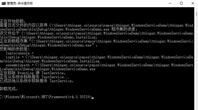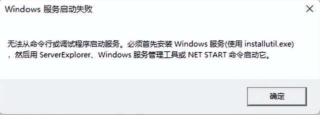 7、接着选择ProjectInstaller进行设置,主要设置Account,指示用来运行此服务的账户类型,可以设置为LocalSystem 8、设置完成之后,切换到MyService这个类,点击切换到代码视图,我们可以看到后台有一些自动生成的代码: 从名称可以看出,这里重写了OnStart和OnStop接口,可以在这里写一些启动服务和停止服务的逻辑。 9、写了一个简单的逻辑,就是每次服务启动或停止都会向指定的文件中写入一串信息。 10、点击项目,右击生成。 11、这样,一个简单的Windows服务就创建完成了。 安装卸载Windows服务我们直接运行刚刚创建的服务,发现是无法运行的,提示使用installutil.exe来运行。 如果安装了VS,这个exe应用程序在C盘里可以找到的,具体路径为:C:\Windows\Microsoft.NET\Framework\v4.0.30319\InstallUtil.exe 接下来,我们使用这个exe来进行安装和卸载Windows服务。 1、首先,使用管理员权限打开CMD,然后进入这个路径下,便于直接操作InstallUtil。 2、安装服务命令:installutil exe绝对路径 ;卸载服务命令:installutil exe绝对路径 -u ;查看安装执行结果: 打开服务,可以看到TestService这个名称的服务已经安装完成, 3、安装完成后,双击打开,可以启动服务: 4、也可以手动停止服务: 5、观察D盘文件,是否存在信息: 6、卸载服务结果: |