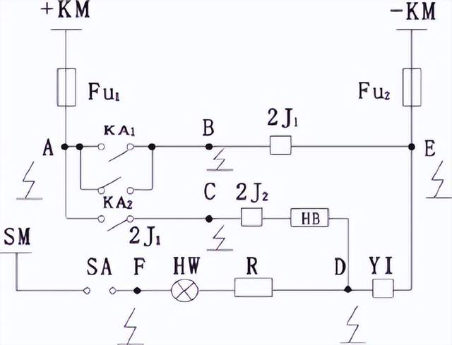直流系统的概念 直流系统是应用于水力、火力发电厂,各类变电站和其它使用直流设备的用户,为给信号设备、保护、自动装置、事故照明、应急电源及断路器分、合闸操作提供直流电源的电源设备。 直流系统是一个独立的电源,它不受发电机、厂用电及系统运行方式的影响,并在外部交流电中断的情况下,保证由后备电源—蓄电池继续提供直流电源的重要设备。直流屏的可靠性、安全性直接影响到电力系统供电的可靠性和安全性。 直流系统的构成及用途 电力系统中的直流电源部分由蓄电池组、充电设备、直流屏等设备组成。它的作用是:正常时为变电站内的断路器提供合闸直流电源;故障时,当厂、站用电中断的情况下为继电保护及自动装置、断路器跳闸与合闸、载波通信、发电厂直流电动机拖动的厂用机械提供工作直流电源。它的正常与否直接影响电力系统的安全可靠运行。 直流系统接地的危害 直流接地故障中,危害较大的是两点接地,可能造成严重后果。一点接地可能造成保护及自动装置误动或者拒动;而两点接地,除可能造成继电保护、信号、自动装置误动或拒动外,还可能造成直流保险熔断,使保护及自动装置、控制回路失去电源,在复杂保护回路中同极两点接地,还可能将某些继电器短接,不能动作跳闸,致使越级跳闸,造成事故扩大。 1正接地的危害 由于断路器跳闸线圈均接负极电源,当发生系统正极接地时,正极经过大地,构成回路。如图所示,当图中的A点和B点同时接地,相当于A、B两点通过大地相连接起来,中间继电器2J1动作造成断路器的跳闸。同理,当图中的A点和C点同时接地,和图中的A点、D点同时接地均可能造成断路器的跳闸 2负接地的危害 负极接地可能造成断路器的拒绝动作,如图所示,当图中的B点,E点同时接地,B、E点通过地构成了回路,即B、E点相接将中间继电器2J1短接,此时,如果系统发生事故,保护动作由于中间继电器2J1被短接,2J1不工作,断路器不会动作,产生拒动现象,使事故越级扩大。同理,当图中的E点和C点同时接地和图中的E点和D点同时接地均可能生成断路器拒动现象。 直流系统接地故障分析 造成变电站直流系统接地的几种原因 (1)雷雨季节,室外端子箱或机构箱内潮湿积水导致直流二次回路中的正电源或负电源对地绝缘电阻下降,严重者可能到零,从而形成接地。 (2)部分型号手车开关的可动部分与固定部分的连接插头或插座缺少可靠的绝缘隔离措施,手车来回移动导致其中导线破损,从而使直流回路与开关金属部分相接触,从而导致接地。 (3)部分直流系统运行多年,二次设备绝缘老化、破损,极易出现接地现象。 (4)因施工工艺不严格,造成直流回路出现裸线、线头接触柜体等,引起接地。 直流系统接地故障的处理及注意事项 查找直流系统接地方法: 1) 检查直流母线(或直流分电屏)微机直流绝缘监测装置,用其确定故障母线及故障线路编号,判明接地极性及接地程度 2) 根据微机直流绝缘监测装置显示故障母线、故障线路编号,顺着线路进行查找 3) 询问有关岗位该回路是否有人工作,若有则立即停止工作 4) 查看有无新开启、有无落水的设备,对有怀疑的设备系统应重点进行查找 5) 从次要负荷到重要负荷,最后停保护、热控负荷的顺序依次瞬停查找 6) 试停绝缘监察装置后;若仍接地,则选择充电机、蓄电池及母线 7) 试拉直流电源进线闸刀,如果接地消失,说明是直流电源进线接地;如果接地仍不消失,说明是直流母线接地,应将控制直流负荷切至非接地母线运行,应根据值长命令将故障母线停电 8) 查找出接地设备后,通知检修处理,处理完毕,尽快恢复原方式。 拉路法是电力系统查直流接地故障一直沿用的一个简单办法。首先分清接地故障的极性,分析故障发生的原因。若站内二次回路有工作,或有设备检修试验,应立即停止。拉开其工作电源,看信号是否消除。用分网法缩小查找范围,将直流系统分成几个不相联系的部分。对于不太重要的直流负荷及不能转移的分路,利用“瞬时停电”的方法,查该分路中所带回路有无接地故障。对于重要的直流负荷,用转移负荷法,查该分路而带回路有无接地故障。 拉路寻找、分路处理以先信号、照明部分后操作部分,先室外后室内,先负荷后电源为原则。在切断各专用直流回路时,切断时间不得超过3秒钟,不论回路接地与否均应合上。 查找直流系统接地时的注意下列事项: 1) 查找直流接地时需两人进行,一人操作,一人监护;在查找接地或处理过程中不允许造成短路或另一点接地。 2) 试拉保护直流电源前,停用该路直流电源的所带保护或采取措施,以防保护误动;必要时会同电气二次人员进行 3) 试拉负荷前,应通知有关值班人员,瞬停方式试拉后,不论设备是否接地,均应立即送电 4) 在环路供电时,应同时拉开两路电源侧的空气开关 5) 直流接地时,禁止在二次回路上工作。 |