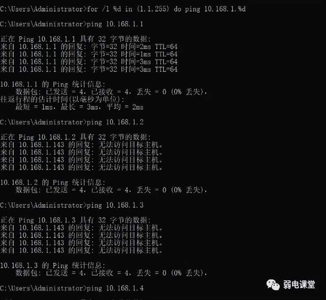 有很多朋友多次问到,如何检测网络故障和对网络进行基础的操作,如:网络经常掉线、网络时好时坏,ip地址冲突、监控有几路不显示等问题,所以我们整理了网络中使用较多且有效的四大命令用法,方便大家日常工作对网络的管理和故障排除。 ping、arp、tracert、route这四大命令配合使用,可以查出或解决网络中的大部分基本故障问题。 一、ping命令的详细用法 在网络中ping是一个十分强大的TCP/IP工具。它的作用主要为: 1、用来检测网络的连通情况和分析网络速度 2、根据域名得到服务器IP 3、根据ping返回的TTL值来判断对方所使用的操作系统及数据包经过路由器数量。 我们通常会用它来直接ping ip地址,来测试网络的连通情况。 类如这种,直接ping ip地址或网关,ping通会显示出以上数据,有朋友可能会问,bytes=32;time<1ms;TTL=128 这些是什么意思。 bytes值:数据包大小,也就是字节。 time值:响应时间,这个时间越小,说明你连接这个地址速度越快。 TTL值:Time To Live,表示DNS记录在DNS服务器上存在的时间,它是IP协议包的一个值,告诉路由器该数据包何时需要被丢弃。可以通过Ping返回的TTL值大小,粗略地判断目标系统类型是Windows系列还是UNIX/Linux系列。 一、ping -t的用法 不间断地Ping指定计算机,直到管理员中断。 这就说明电脑连接路由器是通的,网络效果很好。下面按按住键盘的Ctrl+c终止它继续ping下去,就会停止了,会总结出运行的数据包有多少,通断的有多少了。 二、ping -a的使用 ping-a解析计算机名与NetBios名。就是可以通过ping它的ip地址,可以解析出主机名。 三、ping -n的使用 在默认情况下,一般都只发送四个数据包,通过这个命令可以自己定义发送的个数,对衡量网络速度很有帮助,比如我想测试发送10个数据包的返回的平均时间为多少,最快时间为多少,最慢时间为多少就可以通过以下获知: 从以上我就可以知道在给47.93.187.142发送10个数据包的过程当中,返回了10个,没有丢失,这10个数据包当中返回速度最快为32ms,最慢为55ms,平均速度为37ms。说明我的网络良好。 如果对于一些不好的网络,比如监控系统中非常卡顿,这样测试,返回的结果可能会显示出丢失出一部分,如果丢失的比较多的话,那么就说明网络不好,可以很直观的判断出网络的情况。 四、ping -l size的使用 -l size:发送size指定大小的到目标主机的数据包。 在默认的情况下Windows的ping发送的数据包大小为32byt,最大能发送65500byt。当一次发送的数据包大于或等于65500byt时,将可能导致接收方计算机宕机。所以微软限制了这一数值;这个参数配合其它参数以后危害非常强大,比如攻击者可以结合-t参数实施DOS攻击。(所以它具有危险性,不要轻易向别人计算机使用)。 例如:ping -l 65500 -t 211.84.7.46 会连续对IP地址执行ping命令,直到被用户以Ctrl+C中断. 这样它就会不停的向211.84.7.46计算机发送大小为65500byt的数据包,如果你只有一台计算机也许没有什么效果,但如果有很多计算机那么就可以使对方完全瘫痪,网络严重堵塞,由此可见威力非同小可。 五、ping -r count 的使用 在“记录路由”字段中记录传出和返回数据包的路由,探测经过的 路由个数,但最多只能跟踪到9个路由。 ping -n 1 -r 9 202.102.224.25 (发送一个数据包,最多记录9个路由) 将经过 9个路由都显示出来了,可以看上图。 ping命令用的较多的就这6类的,大家有可能在项目中会用到的。 六、批量ping网段 对于一个网段ip地址众多,如果单个检测实在麻烦,那么我们可以直接批量ping网段检测,那个ip地址出了问题,一目了然。 先看代码,直接在命令行窗口输入: for /L %D in (1,1,255) do ping 10.168.1.%D IP地址段修改成你要检查的IP地址段。 当输入批量命令后,那么它就自动把网段内所有的ip地址都ping完为止。 那么这段“for /L %D in(1,1,255) do ping 10.168.1.%D” 代码是什么意思呢? 代码中的这个(1,1,255)就是网段起与始,就是检测网段192.168.1.1到192.168.1.255之间的所有的ip地址,每次逐增1,直接到1到255这255个ip检测完为止。 二、arp命令的使用 arp是地址解析协议,其基本功能为透过目标设备的IP地址,查询目标设备的MAC地址,以保证通信的顺利进行。它是IPv4中网络层必不可少的协议,不过在IPv6中已不再适用,并被邻居发现协议(NDP)所替代。 说白了,就是把通过ip地址找到设备mac地址。 arp的命令一般有三个用法,就是查询显示、添加记录、与删除记录,这个在我们做网络项目时经常会用到。 1、arp -a ,当你需要显示当期ip地址对应的mac地址时使用 当你需要了解你网络中设备对应的mac地址时,你可以使用arp地址进行显示,这个有利于我们可以清楚了解到ip地址对应的mac地址是哪台设备。 在命令提示符中输入“arp -a”并回车;自动在缓存中,读取IP地址和mac地址的对应关系表; 2、arp -s ,当你需要手动添加或绑定一条arp记录时使用。 手工输入一条ARP项目,格式为“ARP+空格+-a+IP地址+MAC地址”; 在网络中,通常在办公网络或监控项目中,为了防止用户乱改ip地址或ip地址冲突,我们需要给ip地址绑定设备的mac地址。 如下图,先用ARP -s 192.168.1.1 3c-22-3f-5d-f6-77绑定一条记录,然后用arp -a查询了ARP记录添加是否成功。 其实这个命令也叫作绑定mac地址的命令,例如一个公司的网络,员工经常喜欢改自己电脑的ip地址,经常会造成ip地址混乱,无法管理,那么这个时候你只需要把它的ip地址与它电脑mac地址进行绑定,那么下次出现网络故障,就