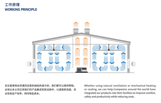 受全球气候变暖的影响,工业厂房的室内温度也越来越高。硕大的工业厂房中,机器设备多,人员及机器产生的热量大,通风不畅很容易导致厂房的二次升温。又因厂房空间面积大,使用中央空调成本高、效果差。传统吊扇风力波及面小,部分员工吹不到风,降温效果不好。移动风扇的风力急而短,长期使用容易造成身体不适;需要占地,电线插头杂乱,不利于车间的安全管理;电力消耗大,使用成本高。 大型工业吊扇是利用它巨大的扇叶带动,可推射大量气流到地面,在地面形成一定高度的气流层水平运动,从而促成了整体空气循环,这样的好处在于全方位的地面覆盖和空气的立体循环。而中驱200G系列一体式变频控制系统能平稳驱动大型工业吊扇,所吹出来的风酷似大自然的微风,人体可以感觉到5-8°的温差效果。 200G优势 控制系统采用一体式设计,全亚克力界面、体积小、重量轻、低噪音、液晶显示、操作简单(开关式调速器)。支持永磁同步电机和三相异步电机;支持Wifi和标准Modbus通讯协议远程控制;支持温度监控、定时功能。系统自带过压、欠压、失压调节、过流、过载、过热、缺相、输出短路、参数异常等保护。系统可支持后台服务器自主管理开发,可满足客户定制化需求。 接线与参数 1. 输入和输出的接线均为航空插头,防呆设计,简单易懂,耐环境性强,便于维修。 2. 控制系统的界面说明 01 电源开关 ON电源打开,OFF电源关闭,默认为OFF状态 02 操作旋钮 启停开关机调速功能一体;顺时针旋转,旋过启动开关后,速度从0逐步增大到设定转速 03 转速显示 显示实际转速 04 电流显示 显示运行电流 05 温度显示 可连接外部温度探头,显示外部温度,不连接时显示25℃ 06 定时显示 显示设定后时间0.5小时为一格 07 定时调整 按增加减少键可设定定时功能(两个键同时按可切换正反转) 08 航空插头 接电源线、电机线,接线方式按说明书第四点连接 09 WIFI功能显示 该功能为选配,装有功能卡后,显示有wifi图标,即可通过微信小程序来控制风扇启动、停止和调速(选配件:wifi板卡) 10 外接水平仪和温度传感器接口 (选配件:水平仪、温度传感器) 11 外引键盘接口 用于面板调试和参数拷贝(选配件:外引键盘) (注:9、10、11为选配件说明) 3. 参数设置 200G系列仅支持外引键盘调试参数,设备厂家都会提前将参数调试好后发货,无需终端客户进行调试。外引键盘可支持一键参数拷贝功能,准确、快捷、高效。 常见故障与处理方法 注意:工业吊扇专用控制系统所使用的场合,要注意绝缘性能不良引起的漏电、易燃易爆,场所违规操作可能引起爆炸或火灾等,因此需要周期性对设备进行安全检查,定期清理风道,线路老化。 |