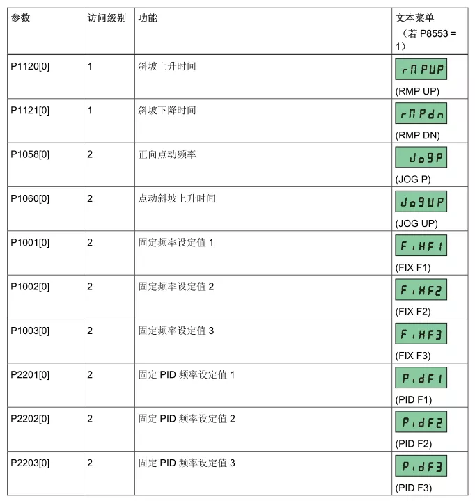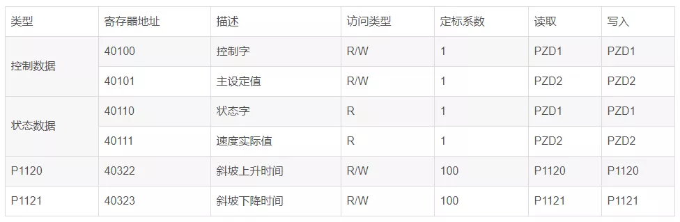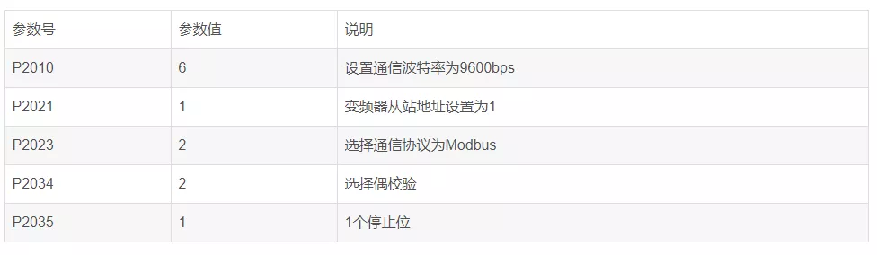 4、变频器常用通信参数如下: