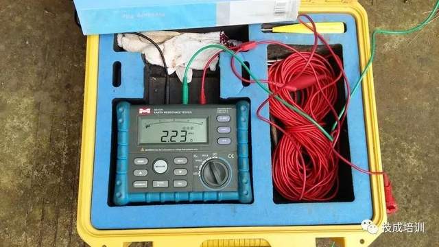 接地电阻就是电流由接地装置流入大地再经大地流向另一接地体或向远处扩散所遇到的电阻,它包括接地线和接地体本身的电阻、接地体与大地的电阻之间的接触电阻以及两接地体之间大地的电阻或接地体到无限远处的大地电阻。 接地电阻大小直接体现了电气装置与“地”接触的良好程度,也反映了接地网的规模。在单点接地系统、干扰性强等条件下,可以采用打辅助地极的测量方式进行测量。 接地电阻主要分以下三种。 1.保护接地:电气设备的金属外壳,混凝土、电杆等,由于绝缘损坏有可能带电,为了防止这种情况危及人身安全而设的接地。 2.防静电接地:防止静电危险影响而将易燃油、天然气贮藏罐和管道、电子设备等的接地。 3.防雷接地:为了将雷电引入地下,将防雷设备(避雷针等)的接地端与大地相连,以消除雷电过电压对电气设备、人身财产的危害的接地,也称过电压保护接地。 接地电阻测量的方法 01 两线法 条件:必须有已知接地良好的地,如PEN等,所测量的结果是被测地和已知地的电阻和。假如已知地远小于被测地的电阻,测量结果可以作为被测地的结果。 适用于:楼群稠密或水泥地等密封无法打地桩的地区。 接线:E+ES接到被测地,H+S接到已知地。 02 三线法 条件:必须有两个接地棒:一个辅助地和一个探测电极。各个接地电极间的间隔不小于20米。原理是在辅助地和被测地之间加上电流,测量被测地和探测电极间的电压降,测量结果包括测量电缆本身的电阻。 适用于:地基接地,建筑工地接地和防雷接地。 接线:S接探测电极,H接辅助地,E和ES连接后接被测地。 03 四线法 基本上同三线法,在低接地电阻测量和消除测量电缆电阻对测量结果的影响时替换三线法。测量时E和ES必须单独直接连接到被测地。该方法是所有接地电阻丈量方法中正确度最高的。 04 单钳测量 测量多点接地中的每个接地点的接地电阻,而且不能断开接地连接防止发生危险。 适用于:多点接地,不能断开连接,测量每个接地点的电阻。 接线:用电流钳监测被测接地点上的电流。 05 双钳法 条件:多点接地,不打辅助地桩,测量单个接地。 接线:使用厂商指定的电流钳接到相应的插口上,将两钳卡在接地导体上,两钳间的间隔要大于0.25米。 接地电阻测试仪使用方法 1、使用接地电阻测试仪准备工作 ①熟读接地电阻测量仪的使用说明书,应全面了解仪器的结构、性能及使用方法。 ②备齐测量时所必须的工具及全部仪器附件,并将仪器和接地探针擦拭干净,特别是接地探针,一定要将其表面影响导电能力的污垢及锈渍清理干净。 ③将接地干线与接地体的连接点或接地干线上所有接地支线的连接点断开,使接地体脱离任何连接关系成为独立体。 2、使用接地电阻测试仪测量步骤 (1)将两个接地探针沿接地体辐射方向分别插入距接地体20m、40m的地下,插入深度为400mm,如下图所示。 接地电阻测试使用图解:a)实际操作 b)等效原理 (2)将接地电阻测量仪平放于接地体附近,并进行接线,接线方法如下: ①用最短的专用导线将接地体与接地测量仪的接线端“E1”(三端钮的测量仪)或与C2、”短接后的公共端(四端钮的测量仪)相连。 ②用最长的专用导线将距接地体40m的测量探针(电流探针)与测量仪的接线钮“C1”相连。 ③用余下的长度居中的专用导线将距接地体⒛m的测量探针(电位探针)与测量仪的接线端“P1”相连。 (3)将测量仪水平放置后,检查检流计的指针是否指向中心线,否则调节“零位调整器”使测量仪指针指向中心线。 (4)将“倍率标度”(或称粗调旋钮)置于最大倍数,并慢慢地转动发电机转柄(指针开始偏移),同时旋动“测量标度盘”(或称细调旋钮)使检流计指针指向中心线。 (5)当检流计的指针接近于平衡时(指针近于中心线)加快摇动转柄,使其转速达到120r/min以上,同时调整“测量标度盘”,使指针指向中心线。 (6)若“测量标度盘”的读数过小(小于1)不易读准确时,说明倍率标度倍数过大。此时应将“倍率标度”置于较小的倍数,重新调整“测量标度盘”使指针指向中心线上并读出准确读数。 (7)计算测量结果,即R地=“倍率标度”读数ד测量标度盘”读数。 |