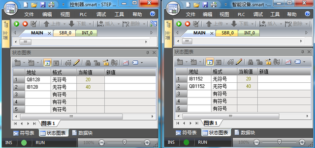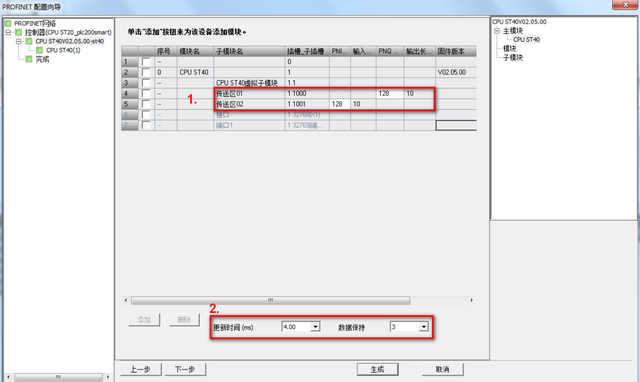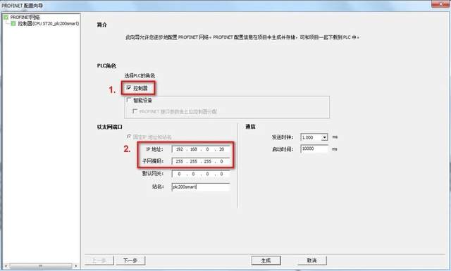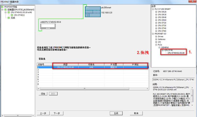 从 S7-200 SMART V2.5 版本开始,S7-200 SMART 开始支持做 PROFINET IO 通信的智能设备。从而,两个 S7-200 SMART 之间可以进行 PROFINET IO 通信,一个CPU 作PROFINET IO 控制器,一个 CPU 作 PROFINET 通信的设备。组态的时候有两种方法,一种是通过硬件目录组态另外一种是通过GSD文件组态。 本文描述两个 S7-200 SMART 之间进行 PROFINET IO 通信,通过GSD文件组态。 通信任务: 控制器将10个字节的数据发送给智能设备,同时从智能设备中读取10个字节的数据。 第一步 智能设备组态-导出GSD文件 1 新建空白项目,打开系统块,选择CPU ST40,CPU的固件选择V2.5,设置选择CPU启动后的模式为运行。如图1.所示。 图1.系统块添加CPU 2 打开PROFINET 向导,有两种方法,任选其中一种打开向导。如图2.所示。 图2.打开PROFINET向导 3 勾选PLC角色为智能设备;以太网端口选择固定IP地址及站名:IP地址是192.168.0.40,子网掩码是255.255.255.0,设备名称是st40。如图3.所示。 图3.设置PLC角色IP地址及设备名称 4 添加传输区,第一个条目是从IB1152开始的10个字节输入区域,第二个条目是从QB1152开始的10个字节输出区域,浏览合适的路径用来存储GSD文件,然后直接导出GSD文件。如图4.所示。 图4.添加传输区并导出GSD文件 5 导出的GSD文件如图5.所示。 第二步 控制器组态-导入GSD文件 1 新建空白项目,打开系统块,选择CPU ST20,CPU的固件选择V2.5,设置选择CPU启动后的模式为运行,如图6.所示。 图6.系统块添加CPU 2 导入从智能设备导出的GSD文件,如图7.所示。 图7.导入GSD文件 3 打开PROFINET 向导,有两种方法,任选其中一种打开向导,如图2.所示。 4 在向导中选择PLC角色为控制器,并且设置控制器的IP地址,如图8.所示。 图8.设置PLC角色和IP地址 5 从硬件目录中 PROFINET-IO,PLCs,SIEMENS,CPU ST40下,选择刚刚添加好的GSD文件,拖放至设备表中。此处设备名称和IP地址均直接由GSD文件指定好,无需再手动修改,如图9.所示。 图9.通过GSD添加智能设备 6 核对GSD文件中已经添加好的传输区,无法修改传输区的数据长度及输入/输出方向,仅可修改传输区条目的起始地址;设置合适的更新时间及数据保持,如图10.所示。 图10.核对添加的传输区 7 无特殊需求,可以一直点击下一步,然后点击生成。 第三步 通信测试 分别下载控制器和智能设备的程序,在状态图表中添加相应的地址区域观察数据交换情况,如图11.所示。 图11.测试结果 来源:技成培训网,作者:技成-眭相建,未经授权不得转载! |