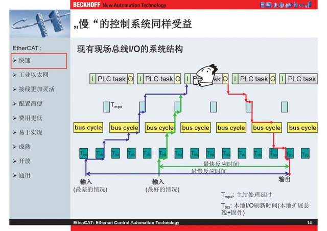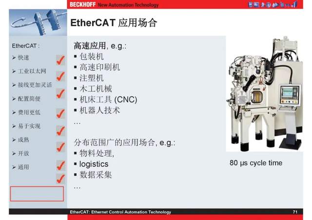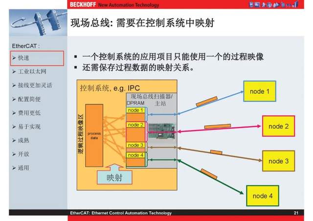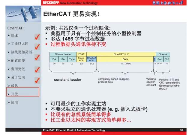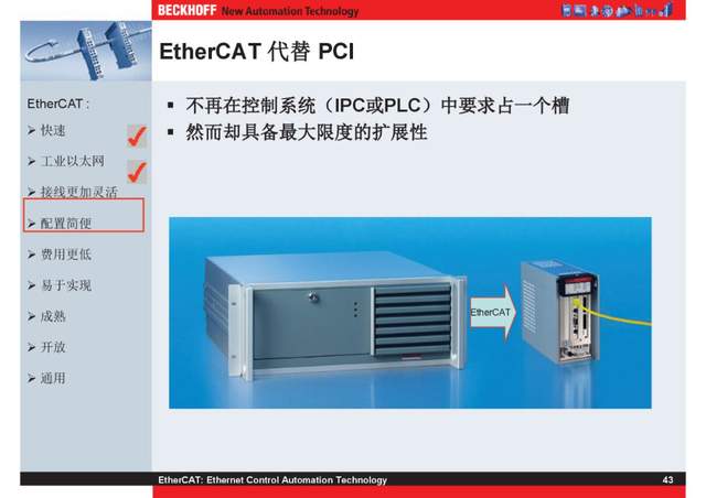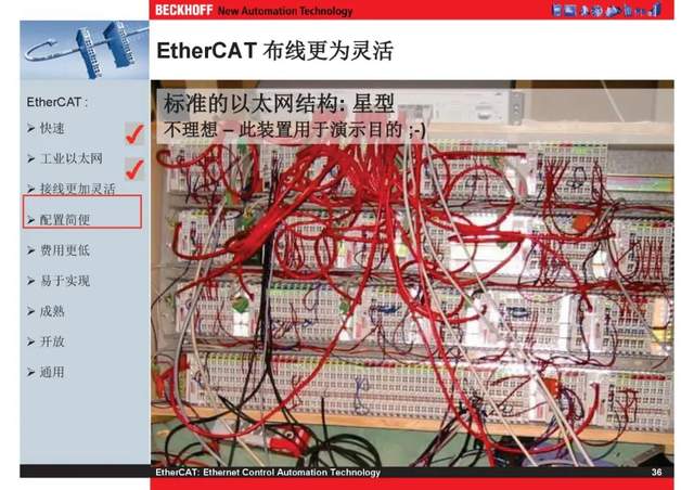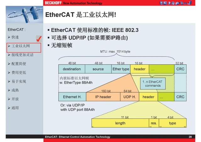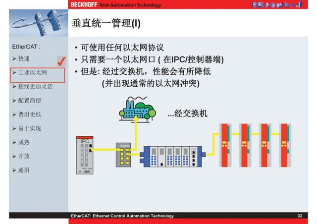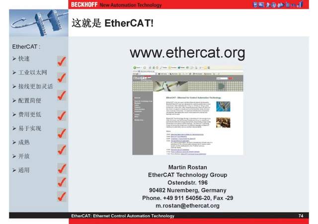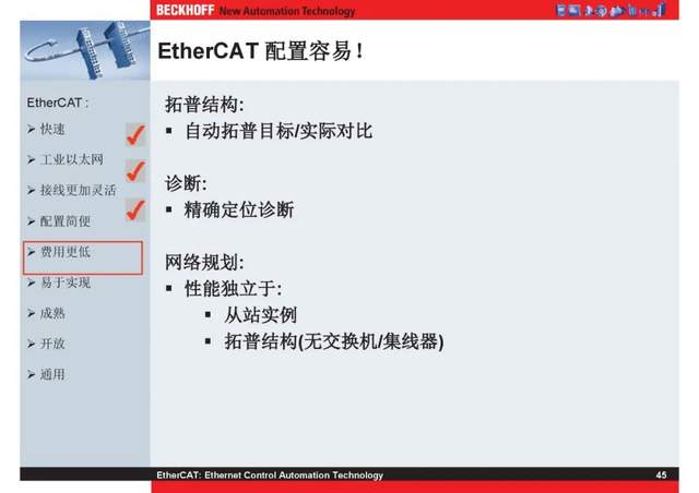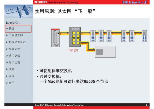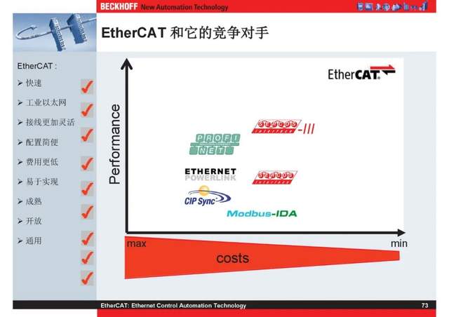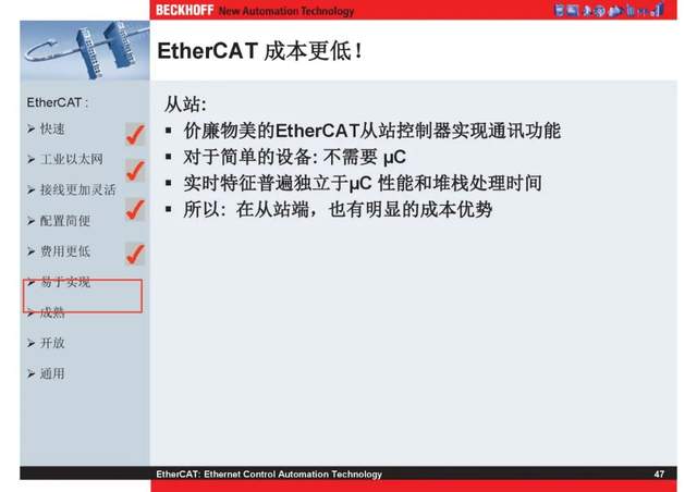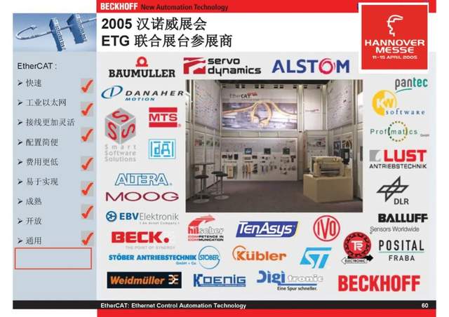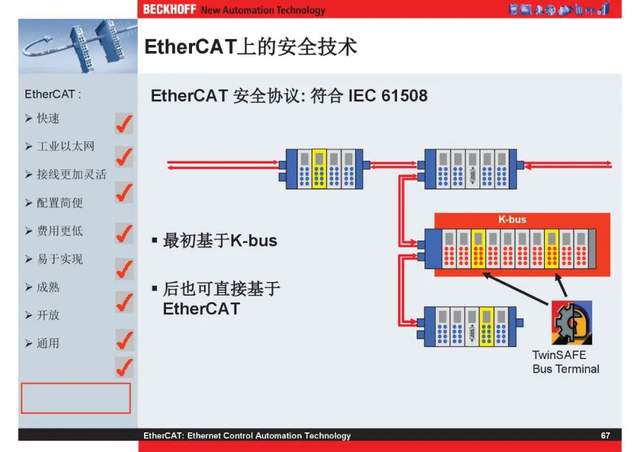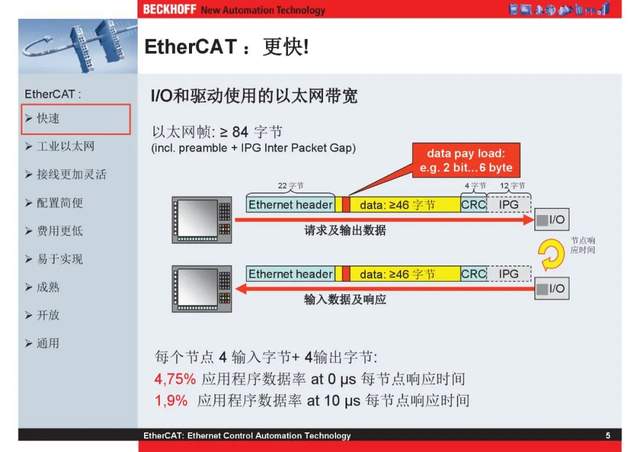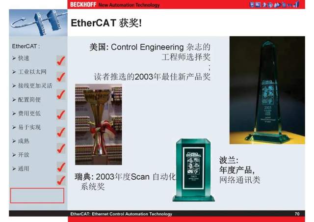 概述 EtherCAT最初由德国倍福研发。EtherCAT为系统的实时性能和拓扑的灵活性树立了新的标准,同时它还符合甚至降低了现场总线的使用成本。EtherCAT的特点还包括高精度设备同步、可选线缆冗余和功能性安全协议(SIL3)。 |