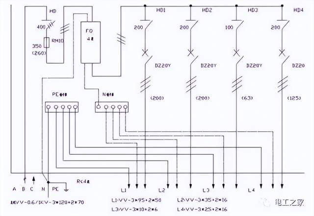 配电箱和配电柜、配电盘、配电凭等,是集中安装开关、仪表等设备的成套装置。 常用的配电箱有木制和铁板制两种,现在哪儿的用电量都挺大的,所以还是铁的用的比较多。 至于它的用途嘛:当然是方便停、送电,起到计量和判断停、送电的作用。 下面就简单介绍一下配电箱接线图和配电箱系统图。 一、配电箱接线图家庭配电箱接线图在进行安装的时候也是必不可少的,特地为大家准备了几幅很详细的接线图。 配电箱接线图一 配电箱接线图二 我们平时看到多家多户用电的时候,大多是由一个配电柜里面发出来的,简单的接线图就是这个样子。 配电箱系统图 二、家用配电箱安装方法1、明装配电箱,配电箱安装在墙上时,应采用开脚螺栓(胀管螺栓)固定,螺栓长度一般为埋入深度(75~150mm)、箱底板厚度、螺帽和垫圈的厚度之和,再加上5mm左右的“出头余量”。对于较小的配电箱,也可在安装处预埋好木砖(按配电箱或配电板四角安装孔的位置埋设),然后用木螺钉在木砖处固定配电箱或配电板。 2、暗装配电箱,配电箱嵌入墙内安装,在砌墙时预留孔洞应比配电箱的长和宽各大20mm左右,预留的深度为配电箱厚度加上洞内壁抹灰的厚度。在圬埋配电箱时,箱体与墙之间填以混凝土即可把箱体固定住 3、配电箱应安装牢固,横平竖直,垂直偏差不应大于3mm;暗装时,配电箱四周应无空隙,其面板四周边缘应紧贴墙面,箱体与建筑物、构筑物接触部分应涂防腐漆。 4、配电箱内装设的螺旋式熔断器,其电源线应接在中间触点的端子上,负荷线应接在螺纹的端子上。这样,在装卸熔芯时不会触电。瓷插式熔断器应垂直安装。 5、配电箱内的交流、直流或不同电压等级的电源,应具有明显的标志。照明配电箱内,应分别设置零线(N线)和保护零线(PE线)汇流排,零线和保护零线应在汇流排上连接,不得绞接,应有编号。 6、导线引出面板时,面板线孔应光滑无毛刺,金属面板应装设绝缘保护套。金属壳配电箱外壳必须可靠接地(接零)。 三、配电箱的二次接线配电箱的二次接线应该从端子排走,首先应分好那些元器件在一拨,这主要满足横平竖直,美观点,从端子排开始遇见一个元器件开始分线同时把窜线嵌入,分完线就开始依照接线图接就完成接线。 配电箱示意图 二次接线其实就是控制线,一次接线就是主电路,二次接线的作用是控制主电路的工作状态,比如接通、断开、延时等。 二次元件主要有: A微机保护装置(保护主回路用的,功能有速断、过流、差动、低周减载,接地保护,根据负载的类型,保护的种类很多)。 B操控装置(故名思意:操作断路器合分闸,以及查看柜内一次元件状态用的)。 C带点显示器(带点指示用的)。 D多功能电度表(看有功,无功,电压,电流等)。 E继电器等辅助元件。 三、总结家庭用电是我们必须仔细和严格把关的一部分,电路的安装安全、完善,那么在今后的生活中也能够安心使用,消除家中的安全隐患。 |