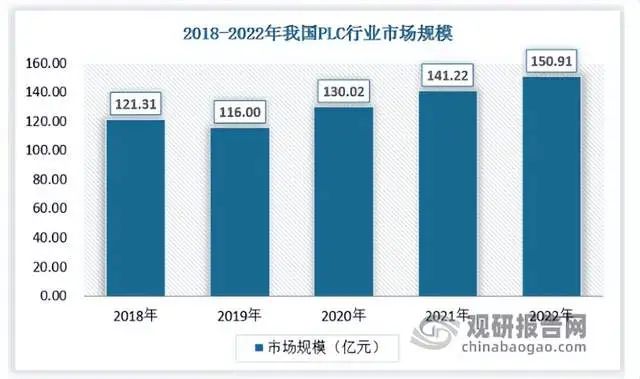 一、行业相关定义 PLC全称是可编程逻辑控制器(ProgrammableLogicController)。是一种使用可编程存储器储存指令,执行逻辑、顺序、计时、计数与计算等功能,并通过模拟或数字输入/输出组件控制各种机械或生产过程的装置,是工业装备、生产系统、重大基础设施的核心控制设备。 PLC主要由CPU,存储器,输入/输出接口和电源等组成。1)CPU又称中央处理器,是PLC的控制中心,通过总线(包括数据总线、地址总线和控制总线)与存储器和各种接口连接,以控制它们有条不紊地工作。CPU的性能对PLC工作速度和效率有较大的影响,故大型PLC通常采用高性能的CPU。2)存储器的功能是存储系统程序、用户程序和程序运行时产生的数据。3)输入/输出接口又称I/O接口或I/O模块,是PLC与外围设备之间的连接部件。PLC的I/O接口能接受的输入和输出信号个数称为PLC的I/O点数,I/O点数是选择PLC的重要依据之一。 二、行业市场发展现状 1、市场规模 PLC在自动化装备和产线中有普遍应用场景,受益制造业产业升级和高端装备的发展,2018-2022年,中国PLC市场规模由121.31亿元提升至150.91亿元,2018-2022年CAGR为5.61%。其中,2019年由于受到我国经济增速放缓和中美贸易摩擦影响,PLC市场规模同比下滑,2020-2021年,得益于口罩机需求大幅增长和中国制造在疫情下体现的供应链优势,2020年和2021年PLC市场明显回暖。2022年在疫情反复的压力下PLC市场体现较强韧性,我国PLC市场规模为150.91亿,PLC市场规模呈稳健增长态势,2022年在内外部环境承压情况下体现韧性。