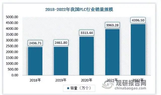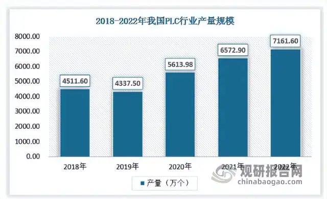 资料来源:观研天下数据中心整理 2、供应情况 根据观研报告网发布的《中国PLC行业发展深度研究与投资前景分析报告(2023-2030年)》显示,长期以来,PLC始终处于工业自动化控制领域的主战场,为各种各样的自动化控制设备提供了非常可靠的控制应用。其主要原因,在于它能够为自动化控制应用提供安全可靠和比较完善的解决方案,适合于当前工业企业对自动化的需要。另一方面,PLC还必须依靠其他新技术来面对市场份额逐渐缩小所带来的冲击,尤其是工业PC所带来的冲击。PLC需要解决的问题依然是新技术的采用、系统开放性和价格。 从整个产量来看,随着技术的进步,基础的PLC产品技术成熟度提升,模块化水平提高,近几年,我国PLC行业产量快速增长,产量从2019年的4337.5万个增长到了2022年的7161.6万个。PLC控制器行业产量与需求量的增长差异主要是由于出口带来的,随着行业生产规模扩大,通用基础产品生产自动化水平提升,性价比优势更为显著,在全球中低端市场竞争力显著增强,出口量高速增长。 值得注意的是,我国的PLC进口量也保持较为稳定的增长,主要是由于国内高端产品供应不足,下游传统行业以及新型行业的持续发展,对高端的PLC产品需求增长,行业的进口量持续增长。