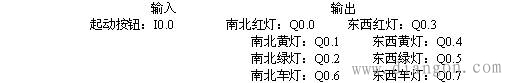 二、控制要求及IO分配 1.控制要求 起动后,南北红灯亮并维持25s。在南北红灯亮的同时,东西绿灯也亮,1s后,东西车灯即甲亮。到20s时,东西绿灯闪亮,3s后熄灭,在东西绿灯熄灭后东西黄灯亮,同时甲灭。黄灯亮2s后灭东西红灯亮。与此同时,南北红灯灭,南北绿灯亮。1s后,南北车灯即乙亮。南北绿灯亮了25s后闪亮,3s后熄灭,同时乙灭,黄灯亮2s后熄灭,南北红灯亮,东西绿灯亮,循环。 2.I/O分配