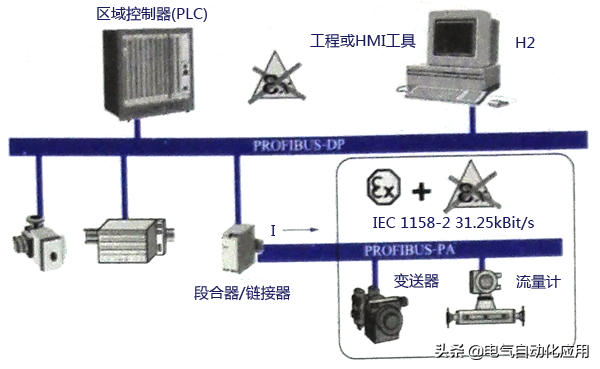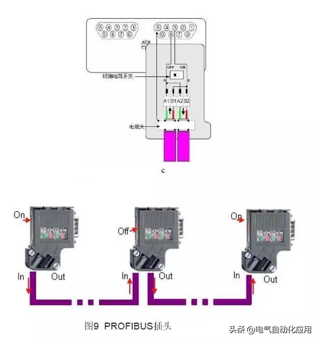 提到西门子的通讯,就不得说PROFIBUS。你知道它是什么吗?如何使用? 本文大概3000字,5分钟可阅读完,读完后会对PROFIBUS有一个直观的概念。 PROFIBUS支持主从模式和多主多从模式。对于多主站的模式,在主站之间按令牌传递决定对总线的控制权,取得控制权的主站可以向从站发送、获取信息,实现点对点的通信。 一、PROFIBUS的组成PROFIBUS协议包括三个主要部分:PROFIBUS-DP(分布式外部设备)、PR0FIBUS-PA(过程自动化)和PR0FIBUS-FMS(现场总线报文规范)。 1、PROFIBUS-DP(分布式外部设备)PROFIBUS-DP是一种高速低成本数据传输,用于自动化系统中单元级控制设备与分布式I/O(例如ET 200)的通信。主站之间的通信为令牌方式,主站与从站之间为主从轮询方式,以及这两种方式的混合。一个网络中有若干个被动节点(从站),而它的逻辑令牌只含有一个主动令牌(主站),这样的网络为纯主一从系统。图1所示为典型的主从PROFIBUS-DP总线,图中有一个站为主站,其他站都是主站的从站。 图1 典型的主从PROFTBUS-DP总线 2、PROFIBUS-PA(过程自动化)PROFIBUS-PA用于过程自动化的现场传感器和执行器的低速数据传输,使用扩展的PROFIBUS-DP协议。传输技术采用IEC 1158-2标准,可以用于防爆区域的传感器和执行器与中央控制系统的通信。使用屏蔽双绞线电缆,由总线提供电源。典型PROFIBUS-PA系统配置如图2所示。 图2 典型PROFIBUS-PA系统配置 3、PR0FIBUS-FMS(现场总线报文规范) PR0FIBUS-FMS可用于车间级监控网络,FMS提供大量的通信服务,用以完成中等级传输速度进行的循环和非循环的通信服务。对于FMS而言,它考虑的主要是系统功能而不是系统响应时间。如图3所示,一个典型PROFIBUS-FMS系统由各种智能自动化单元组成,如PC、PLC、HMI等。 图3 典型PROFIBUS-FMS系统 二、PROFIBUS协议结构PROFIBUS协议结构以ISO/OSI参考模型为基础,其协议结构如图4所示,第1层为物理层,定义了物理的传输特性;第2层为数据链路层;第3-6层PROFIBUS未使用;第7层为应用层、定义了应用的功能。 图4 典型的PROFIBUS-FMS系统 PROFIBUS-DP是高效、快速的通信协议,它使用了第1层与第2层及用户接口,第3-7层未使用。这种简化的结构确保了DP快速、高效的数据传输。 三、传输技术PROFIBUS总线使用两端有终端的总线拓扑结构、如图5所示。 图5 两端有终端的总线拓扑结构 PROFIBUS使用三种传输技术:PROFIBUS DP和PROFIBUS FMS采用相同的传输技术,可使用RS485屏蔽双绞线电缆传输或光纤传输;PROFIBUS PA采用IEC 1158-2传输技术;DP和FMS使用相同的传输技术和统一的总线存取协议,可以在同一根电缆上同时运行;DP/FMS符合EIA RS-485标准(也称为H2),采用屏蔽或非屏蔽双绞线电缆,9.6kbit/s-12Mbit/s。一个总线段最多32个站、带中继器最多127个站。DP/FMS传输距离与传输速率有关,3-12Mbit/s时为100m,9.6-93.75kbit/s时为1200m。 另外,为了适应强度很高的电磁干扰环境或使用高速远距离传输,PROFIBUS可使用光纤传输技术。 四、PROFIBUS总线连接器PROFIBUS总线连接器是用于连接PROFIBUS站与电缆实现信号传输·带有内置终端电阻,如图6所示。 图6 PROFIBUS总线连接器 一、PROFIBUS-DP线的正确接法普及 正确接法如下图,不用解释,看图就明白。PROFIBUS 电缆很简单的,就只有两根线在里面,一根红的一根绿的,然后外面有屏蔽层。接线的时候,要把屏蔽层接好,不能和里面的电线接触到。要分清楚进去的和出去的线分别是哪个,假如是一串的,就是一根总线下去,中间不断地接入分站,这个是很常用的方法。在总线的两头的两个接头,线都要接在进去的那个孔里,不能是出的那个孔,然后这两个两头的接头,要把它们的开关置为ON状态,这时候就只有进去的那个接线是通的,而出去的那个接线是断的。其余中间的接头,都置为 OFF,它们的进出两个接线都是通的(记忆方法:ON表示接入终端电阻,所以两端的接头拨至ON;OFF表示断开终端电阻,所以中间的接头要拨至 OFF)。 二、手把手教你如何接,如何买 无论是组成MPI还是RPOFIBUS-DP网络,用到的主要部件都是一样的: 具体电缆及接头订货号请参看:常用附件订货号 A. 电缆和剥线器。使用FC技术不用剥出裸露的铜线。 图1. 剥好一端的PROFIBUS电缆与快速剥线器(FCS,订货号6GK1905-6AA00)。 B. 打开PROFIBUS网络连接器。首先打开电缆张力释放压块,然后掀开芯线锁。 图2. 打开的PROFIBUS连接器 C. 去除PROFIBUS电缆芯线外的保护层,将芯线按照相应的颜色标记插入芯线锁,再把锁块用力压下,使内部导体接触。应注意使电缆剥出的屏蔽层与屏蔽连接压片接触。 图3. 插入电缆 由于通信频率比较高,因此通信电缆采用双端接地。电缆两头都要连接屏蔽层。 D. 复位电缆压块,拧紧螺丝,消除外部拉力对内部连接的影响。 网络连接器主要分为两种类型:带和不带编程口的。不带编程口的插头用于一般联网,带编程口的插头可以在联网的同时仍然提供一个编程连接端口,用于编程或者连接HMI等。 图4. 左侧为不带编程口的网络连接器(订货号:6ES7 972-0BA52-0XA0)右侧的是带编程 通过PROFIBUS电缆连接网络插头,构成总线型网络结构。 图5. 总线型网络连接 在上图中,网络连接器A、B、C分别插到三个通信站点的通信口上;电缆a把插头A和B连接起来,电缆b连接插头B和C。线型结构可以照此扩展。 注意圆圈内的“终端电阻”开关设置。网络终端的插头,其终端电阻开关必须放在“ON”的位置;中间站点的插头其终端电阻开关应放在“OFF”位置。 注意事项; 终