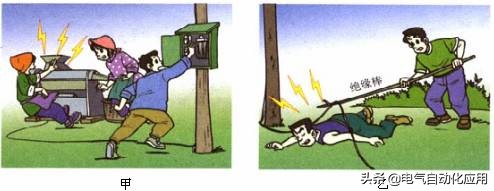 (8)试电笔 家庭电路中的电流过大的原因 (1)发生短路:短路就是电流没经过用电器而直接连通零线和火线,这就相当于一个电阻很小的导线与其它用电器并联,根据并联电路中电阻的规律,这时电路中的总电阻更小,根据欧姆定律可计算出此时干路中的电流可达几百安,使保险丝瞬间熔断。 (2)用电器的总功率过大。当电路上连接的用电器太多时,根据公式P=UI,则有 I=P/U, 火线与零线间的电压 U=220V是一定的,所以,总功率P越大,干路中的电流I就越大,当电流I大到一定程度便可使保险丝熔断。 安全用电常识(1)通过人体的电流大小决定于外加电压和人体的电阻; (2)安全电压:只有不高于36伏的电压才是安全的; (3)家庭电路的电压是220伏,动力电路的电压是380伏。 (4)触电事故是由于过大的电流通过人体而引起的,且通过人体的电流越大,通电的时间越长,越危险。 (5)家庭电路中的触电事故,都是人体直接或间接跟火线连通造成的。 低压触电的两种形式: 单线触电:站在地上的人触到火线,则电流由火线进入人体到地,经地线形成回路,造成触电事故。 双线触电:站在绝缘体上的人若同时触到两根电线时,电流将由火线进入人体到另一根线(零线)而形成回路,造成触电事故。 所以,为了安全用电,绝对不要接触没有绝缘皮的火线以及跟火线连通的导体。 那么我们在生活用电中要特别警惕什么呢?那就是要特别警惕本来是绝缘的物体导了电,本来是不该带电的物体带了电。 例如:①注意防止绝缘部分破损。②保持绝缘部分干燥,不用湿手扳开关,不在电线上晾衣服。③有人触电,要先切断电源,或者用干木棍等绝缘体拨开电线。④架设电视天线时,注意不要触及电线。用电器有金属外壳的要接地。所以对于低压带电体的用电原则是不接触低压带电体。 (6)高压触电的两种形式 同学们有没有见过这个标志?这是高压危险的标志。 高压电弧触电:当人体靠近高压带电体到一定距离时,高压带电体和人体之间会发生放电现象。这时有电流通过人体,造成高压电弧触电。 跨步电压触电:高压输电线落在地面上,地面上与电线断头距离不同的各点存在着电压,当人走近断头时,两脚位于离断头远近不同的位置上,因而两脚之间有了电压(跨步电压)。这时电流通过人体,造成跨步电压触电。 所以,为了安全用电,不要靠近高压带电体。 触电的急救: 首先,不能直接去拉触电人,否则去救的人也会触电。应当赶快切断电源,或者用干燥的木棍等将电线挑开,迅速使被触电的人脱离电源。发生火灾时,要首先切断电源,绝对不要带电泼水救火。 [groupid=97]电工电气学习[/groupid] ![]() |