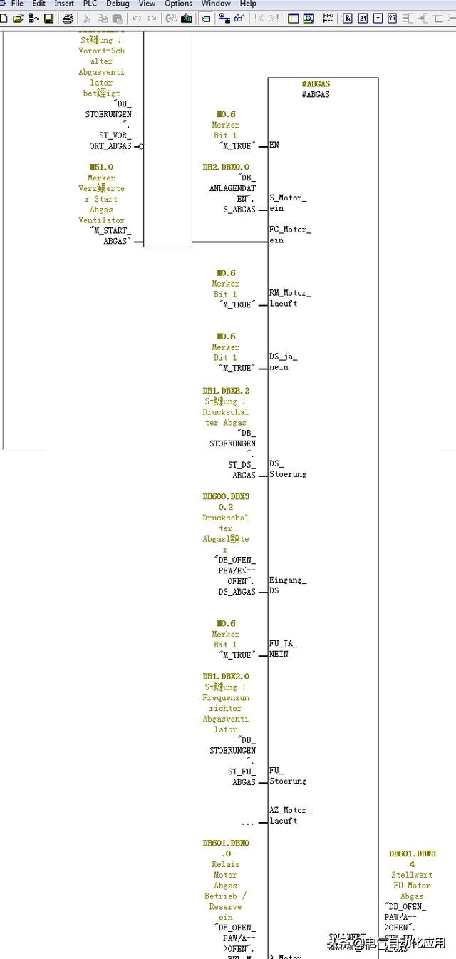 受影响的是一个其他系统上辅助的M440变频器75kw,负载是一台75kw的风机。 该设备运行情况一直很稳定,已经稳定运行超过10年,直到最近新增加了伺服系统后才出现问题。该风机无法启动。 出问题后首先检查电机,断电后检查接地,控制线和动力线。没有发现问题。 然后将重心放在变频器上,变频器的接线也没有问题,且变频器没有报警。 将线接好,检查接线,然后从HMI启动该风机,该风机还是没有反应,且变频器和HMI都没有发现报警。, 这次怀疑是不是程序出了问题,将PLC清空,将程序冲重新下载,依然没有问题。 看来需要进一步的控制程序了。 找到图纸,发现该变频器是由PLC的模拟量输出控制的, 打开STEP7,找到该变频器的控制程序。 最终PLC输出模拟量控制变频器启动 检测到该步以为是是变频器出现了问题,毕竟是该变频器使用了很多年,在库房找到备件后将变频器更换,然后手动输入参数,启动,测量电流,还是没有反应。 这时为了辨别是否是新的变频器也出现了问题,于是调整变频器参数,使用手动控制启动,手动给与频率,这时该变频器终于慢慢的启动了。 最后才怀疑是否是因为干扰导致的,于是拿来信号发生器。 将PLC控制线拆掉换,将信号发生器打到电流档,同样是10ma电流信号,信号发生器居然将变频器启动了。(变频器除了模拟量信号,还有一个开关量,同样测试时需要将开关量短接) 启动后确定是干扰导致的故障,伺服驱动器距离该变频器较近。 知道了故障就好处理,首先我们在PLC和变频器之间增加了信号隔离模块,设备改造后设备正常,可惜好景不长,使用了一个月后,变频器再次无法启动,经检测,发现是信号隔离模块烧坏导致。 看来干扰还真是很严重啊!为了一劳永逸,我们决定将PLC和该变频器的控制方式更改。 首先将该变频器连接到S7-300的PROFIBUS-DP网里面,取消了模拟量控制,将模拟量控制线拆除,将程序里的输出值以通讯的方式写进变频器里,为了阻止干扰影响DP网,将该变频器接到RS485模块的出线端,避免影响主系统,至此,故障彻底解决。 今天和大家聊一聊如何处理变频器或者伺服系统的干扰问题? 变频器的通讯受到干扰,采用什么方式可以减少干扰? ● 变频器本身也是一个干扰源。所以在使用上位机与变频器进行RS-485通讯时或者模拟量控制时,为了克服上述两方面对通讯方式的电磁干扰时,可以考虑增加“交流输入电抗器”、“输入交流滤波器”、“交流输出电抗器”。 变频器接入输出电抗器的作用: 1、改善电机的绝缘特性,减少电机噪音,延长电机的使用寿命。 2、增加变频器到电动机的导线距离。 4、改善输出电流波形。 见下图所示: emc外围配件安装示意图(虚线框所示) 除此以外还可以 ● 电源输入端加装EMC输入滤波器,可以有效的防止电磁干扰对通讯设施的干扰。 滤波器 对特定频率的频点或该频点以外的频率进行有效滤除的电路,就是滤波器。 其功能就是得到一个特定频率或消除一个特定频率, 利用这个特性可以将通过滤波器的一个方波群或复合噪波,而得到一个特定频率的正弦波, ● 接地端子PE必须可靠接地,接地电阻值必须小于0.1Ω。否则会导致变频器工作异常甚至损坏。 见下图所示: ● 在变频器与电源中间加装外置 EMC 输入滤波器(见上上图所示)不仅可以抑制周围环境的电磁噪声对变频器的干扰,也可以防止变频器所产生的对周围设备的干扰。 需要在输入端外接滤波器才能使变频器满足安装中的 C2 类水平。 安装 EMC 输入滤波器需要注意: ② 滤波器地必须与变频器PE 端地接到同一公共地上,否则将严重影响 EMC 效果。 ③ 滤波器尽量靠近变频器的电源输入端安装。 ● 无论是变频器的输入侧信号是模拟电压输入还是数字输入方式,它们对外部的电磁干扰特别敏感,所以一般需要采用屏蔽电缆线,而且配线距离尽量短,不要超过20米,另外在电磁干扰强的场所,模拟信号源则需要加装滤波电容器或铁氧体磁芯。 [groupid=79]工控变频器学习[/groupid] |