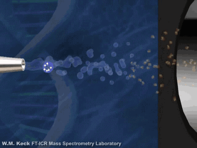 FT-ICR质谱的分析器是一个具有均匀(超导)磁场的空腔,离子在垂直于磁场的圆形轨道上作回旋运动,回旋频率仅与磁场强度和离子的质荷比有关,因此可以分离不同质荷比的离子,并得到质荷比相关的图谱。