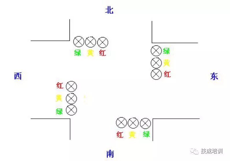 十字路口的交通指挥信号灯布置如下图: 一、控制要求