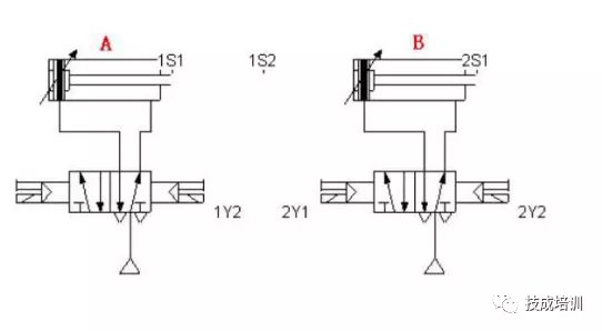 设计程序:使两个气缸顺序动作,顺序A1B1B0A0(二)移位-步骤图