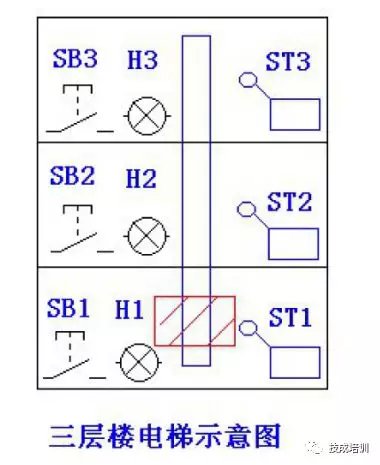 如下所示是三层楼电梯示意图电梯的上升、下降由一台电动机控制;正转时电梯上升、反转时电梯下降。各层设一个呼叫开关(SB1、SB2、SB3)、 一个呼叫指示灯(Hl、H2、H3)、一个到位行程开关(STI、ST2、ST3)。 控制要求:
