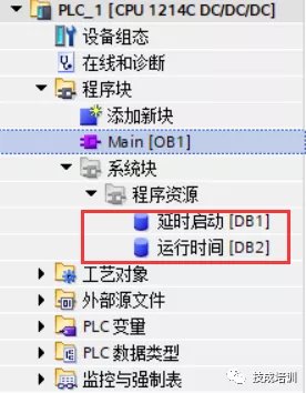 打开程序块>>>>系统块>>>>程序资源,在里面可看到定时器所分配的背景DB块,若使用的定时器指令比较多少,而且都采用“单个实例”的方式分配的背景DB块,那么在程序资源中就会出现很多个DB块,这不方便管理,所以对应该种情况,可选择使用“多重实例”的方式进行处理。