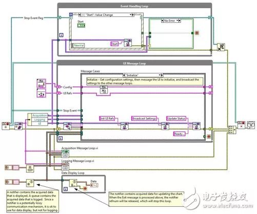 04创建庞大繁琐的程序框图许多新LabVIEW用户都会把程序框图编写得非常繁琐庞大。对于一些复杂的应用程序,我们难免需要编写较大的程序框图,但庞大的程序框图从一定程度上也可以表明该程序缺乏编程架构。如果没有一个基本的架构,要长期维护该程序是非常困难的,而且如果以后要添加新功能也会非常困难。正如只有一个好的框架才能建造一栋结构合理的房子,一个好的编程架构可以为您构建应用程序提供了一个安全可靠的框架。 几乎所有的程序员都会发现常见的框架中,软件架构是非常有用的。实际上LabVIEW中的许多架构,如生产者/消费者和状态机,与其他编程语言非常相似。 了解LabVIEW的架构可以缩短开发时间和提高应用程序的可扩展性。LabVIEW 2012包含了模板和项目范例,使理解架构变得更加容易。模板解释了不同的架构及应用。项目范例则是基于模板的更大型应用程序,演示了如何使用模板来应对实际的挑战。您可以将硬件加入到范例项目中,或者需要时可将项目范例作为一个整体应用程序,同时项目范例具有开放性且文档记述也很完整,所以您可针对具体应用进行自定义。
