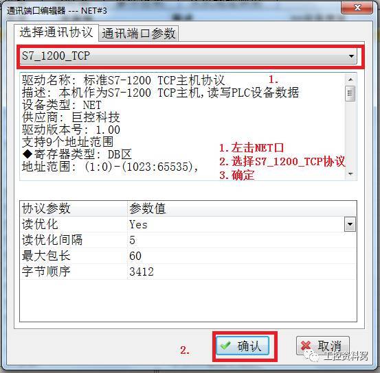 1. 使用GRM500工程配置软件GRMDev3完成GRM500的工程开发和下载,选择西门子S7-1200的S7_TCP协议,建立设备,配置需要远程监控的变量,及对应的PLC寄存器地址。