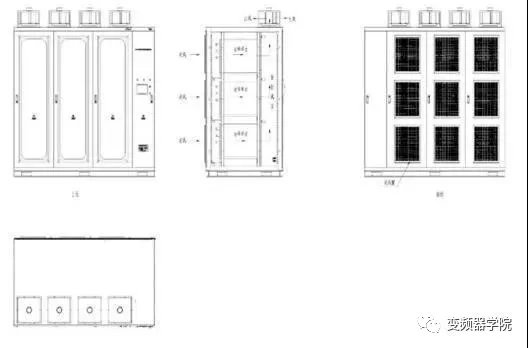从功率柜散热系统图可知:功率单元内部散热系统通过安装在单元内的风机强制冷却单元里的散热器,使每一个功率单元满足散热需求,同时,由于功率单元内风机吹走热风,使其进风处的柜体内形成强力负压,柜外冷风大量进入高压变频气内,通过功率单元风道对单元散热器进行冷却。同时,由于柜顶风机大量抽风,使其密闭风室内形成强力负压,加速功率单元内热风进入密闭风室,通过柜顶风机抽出高压变频器柜外。通过建立严密畅通的风道,以及在功率单元内设计强制风冷,大大提高那高压变频器散热系统的散热能力和效率,同时,也可以减少散热器体积和功率柜体积,实现高压变频器的小型化,为用户安装高压变频器节省空间。