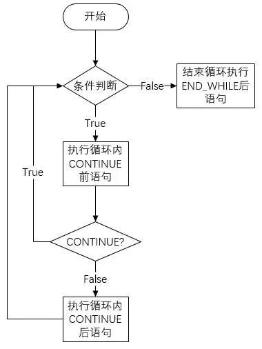 通过指令"复查循环条件"(Continue),可以终止当前正在运行的程序循环。通过指令"立即退出循环"(Exit)终止整个循环的执行。
