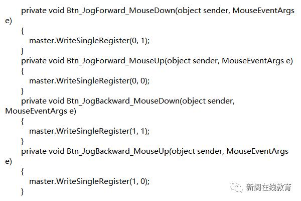 - 点动运动模式:设置点动运动速度,按住正向点动或者反向点动,实现电机的点动运动,代码如下所示: