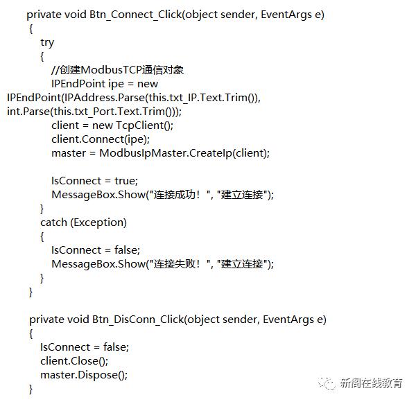 - 建立连接和断开连接:这里通过按钮实现建立连接和断开连接2个功能,代码如下所示: