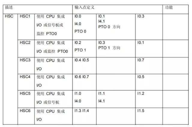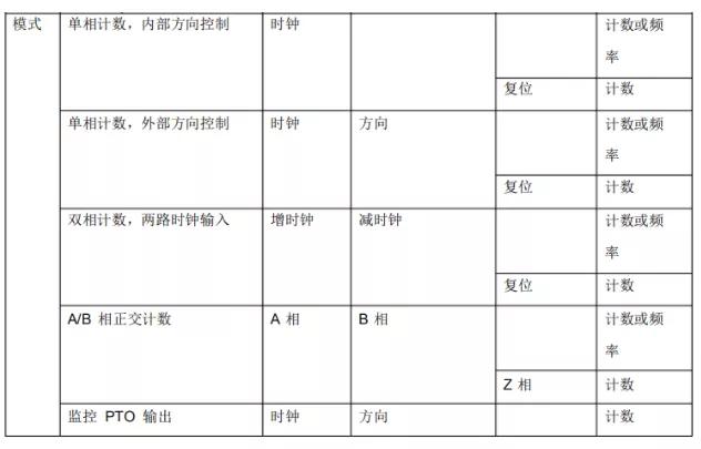 高速计数器的输入使用与普通数字量输入相同的地址,当某个输入点已定义为高速计数器的输入点时,就不能再应用于其它功能,但在某个模式下,没有用到的输入点还可以用于其它功能的输入监控 PTO 的模式只有 HSC1 和 HSC2 支持,使用此模式时,不需要外部接线, CPU 在内部已作了硬件连接,可直接检测通过 PTO 功能所发脉冲。