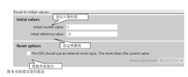 1、 这里就是图 9 中系统指定的高速计数器硬件识别号,这里填 1 2、 “1”为使能更新初值 3、 “0”新初始值为 0 至此程序编制部分完成,将完成的组态与程序下载到 CPU 后即可执行,当前的计数值可在 ID1000 中读出 ,关于高速计数器指令块,若不需要修改硬件组态中的参数,可不需要调用,系统仍然可以计数。