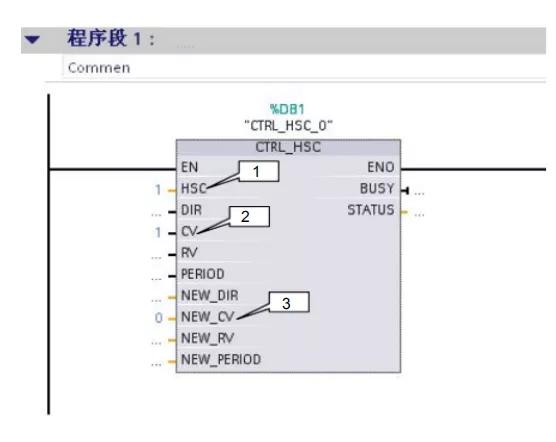2、程序编写 将高速计数指令块添加到硬件中断中