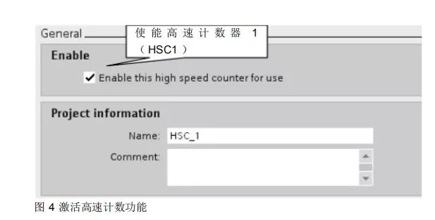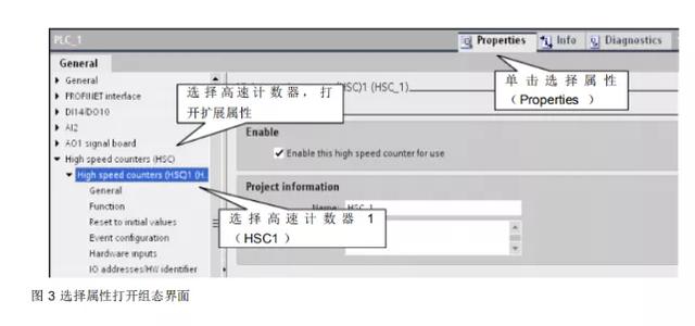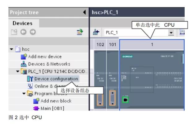 组态步骤: 先在设备与组态中,选择 CPU ,单击属性,激活高速计数器,并设置相关参数。此步骤必须实现执行, 1200 的高速计数器功能必须要先在硬件组态中激活,才能进行下面的步骤