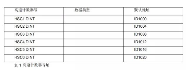 二、高速计数器寻址 CPU 将每个高速计数器的测量值,存储在输入过程映像区内,数据类型为 32 位双整型有符号数,用户可以在设备组态中修改这些存储地址,在程序中可直接访问这些地址,但由于过程映像区受扫描周期影响,在一个扫描周期内,此数值不会发生变化,但高速计数器中的实际值有可能会在一个周期内变化,用户可通过读取外设地址的方式,读取到当前时刻的实际值。以 ID1000 为例,其外设地址为“ ID1000 :P”。表 8-2 所示为高速计数器寻址列表