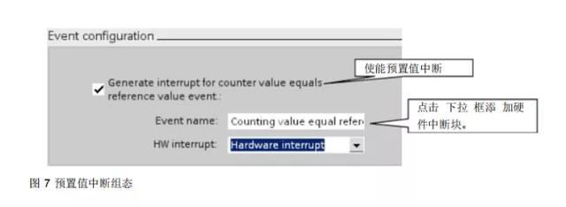 添加硬件中断块,关联相对应的高速计数器所产生的预置值中断