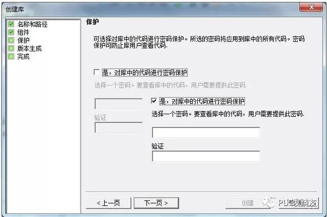第四步:此时,我们可以根据需要选择是否对其库文件进行密码保护;如需要则勾选“是........”输入相关的数字串后点击下一页;如下图所示