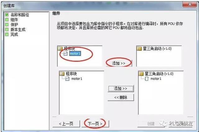 第三步:选择需要创建库对应的程序块后点击添加,接着点击下一页;如下图所示