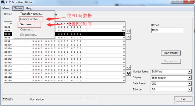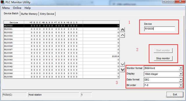 PS:1:plc地址,2:开始结束监控,3:更改监控方式