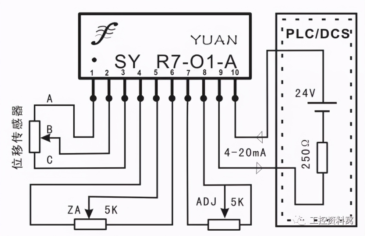 [size=0.8]1.2 两线制无源电压信号输入型传感器,经电压配电器配电后与PLC连接。如图2、图3所示,位移、电子尺传感器正端、负端接16—24VDC电压。