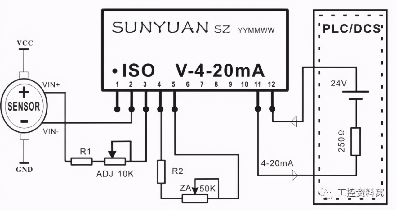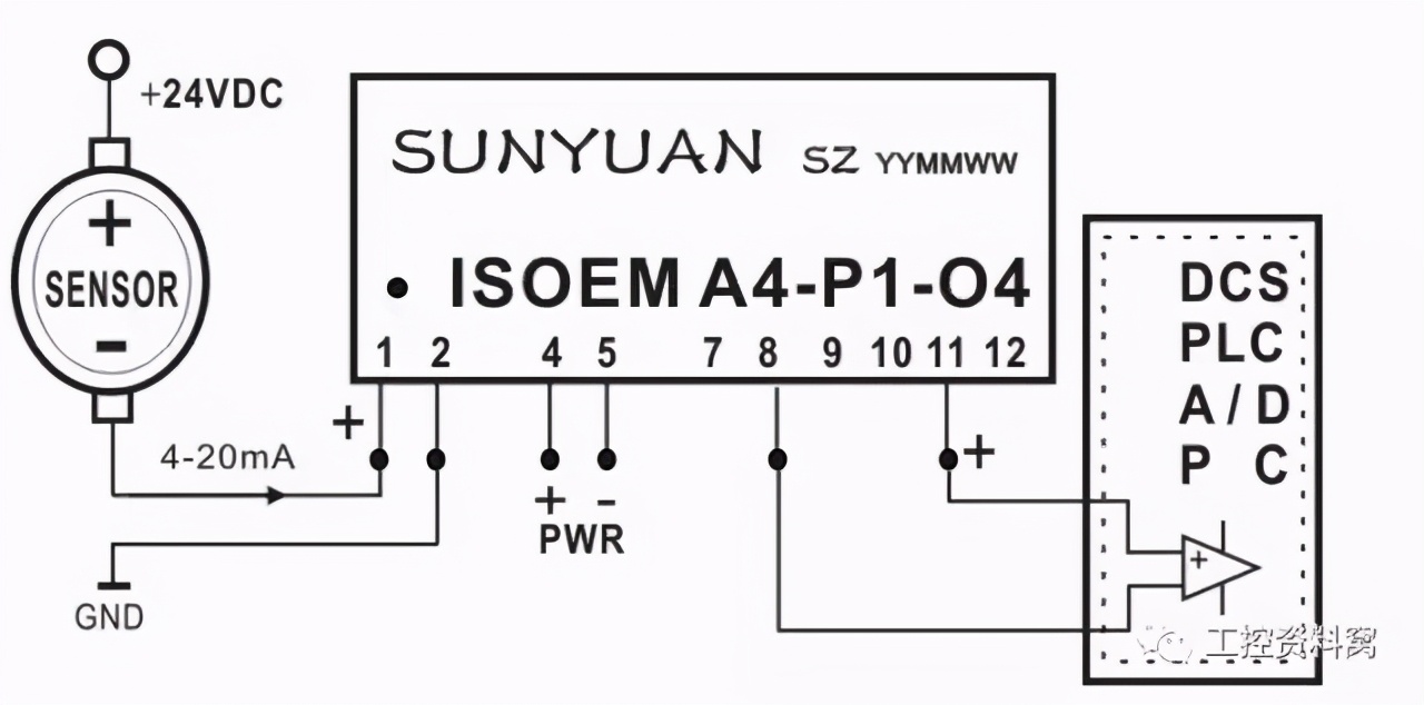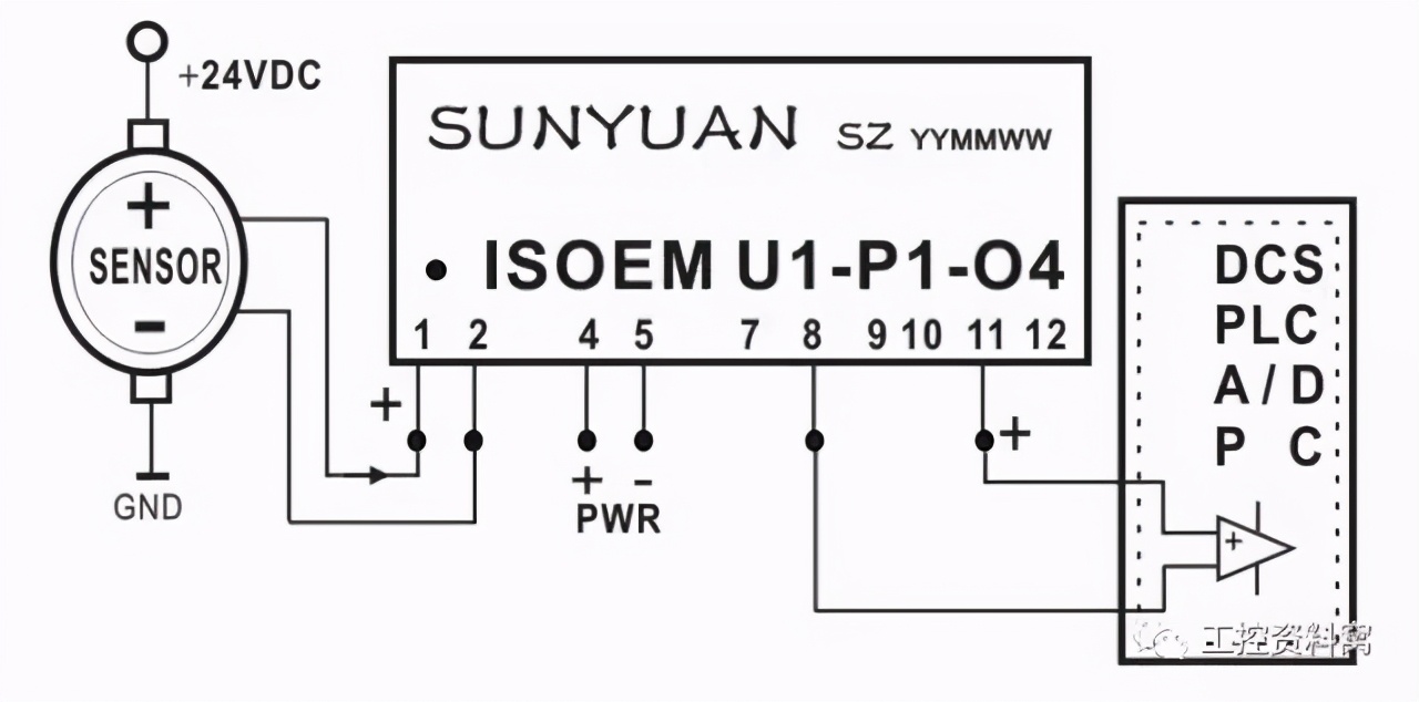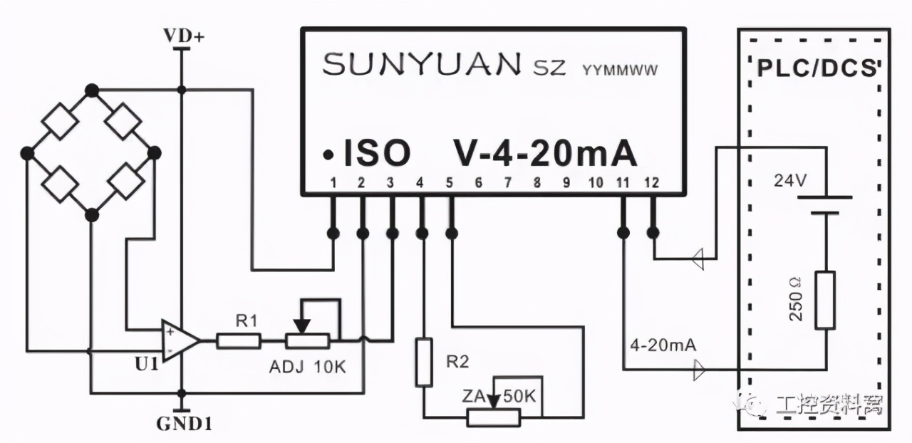 [size=0.8]图11 四线制传感器信号V/V隔离后与PLC连接典型应用图
