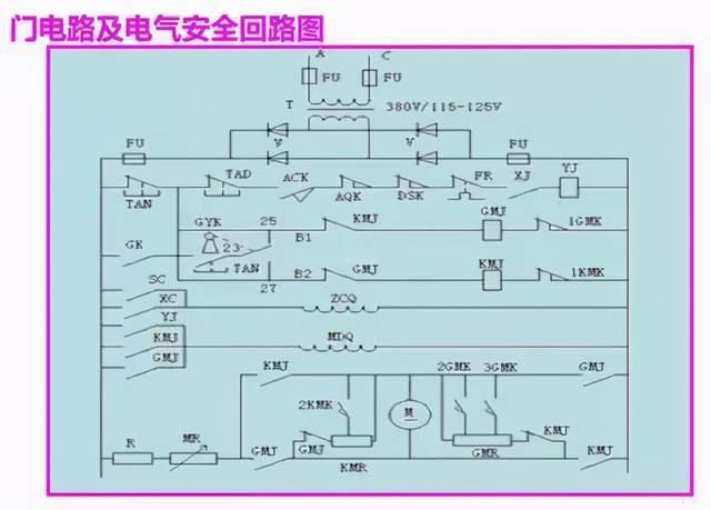 一.电梯基本原理 电梯是机械、电气紧密结合的大型机电产品。主要由机房、井道、轿厢、门系统和电气控制系统组成。 井道中安装有导轨,轿厢和对重由曳[ye]引钢丝绳连接,曳引钢丝绳挂在曳引轮上,曳引轮由曳引电动机拖动。轿厢和对重都装有各自的导靴,导靴卡在导轨上。曳引轮运转带动轿厢和对重沿各自导轨做上下相对运动,轿厢上升,对重下降。这样可通过控制曳引电动机来控制轿厢的启动、加速、运行、减速、平层停车,实现对电梯运行的控制。
