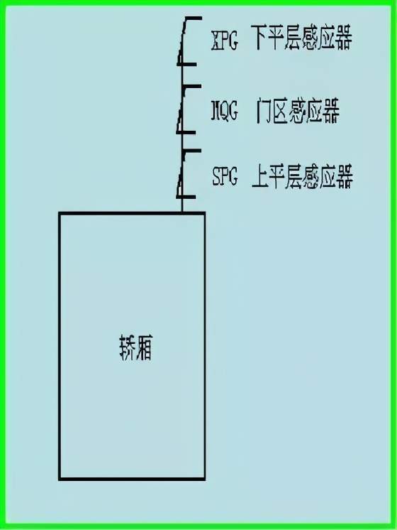 (2)减速当电梯选中某层,意味着将在该层停车,达到换速点就应减速,为平层停车作准备。 (3)平层停车当减速运行到平层点时,说明轿门门坎与厅门门坎基本平齐,可以停车。即将主回路曳引电动机电源断开,并实施电磁抱闸。一般平层感应器置于轿厢顶上,如图所示。注意:当上、下平层感应器全部动作后,表示到平层点。