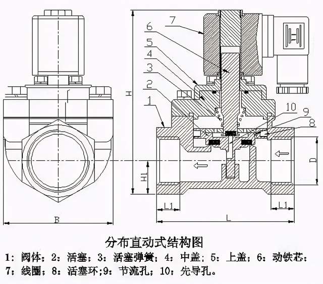 ▲就像这样 电磁阀从工作原理上可分为三大类 1、直动式电磁阀 原理:常闭型通电时,电磁线圈产生电磁力把敞开件从阀座上提起,阀门打开;断电时,电磁力消失,弹簧把敞开件压在阀座上,阀门敞开。(常开型与此相反) 特点:在真空、负压、零压时能正常工作,但通径一般不超过25mm。