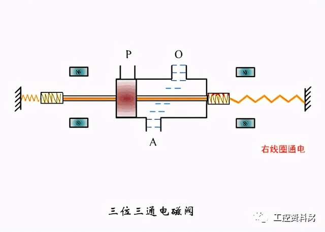 磁阀有很多种,不同的电磁阀在控制系统的不同位置发挥作用,最常用的是单向阀、安全阀、方向控制阀、速度调节阀等。那么首先说一下电磁阀的工作原理: 电磁阀里有密闭的腔,在不同位置开有通孔,每个孔连接不同的油管,腔中间是活塞,两面是两块电磁铁,哪面的磁铁线圈通电阀体就会被吸引到哪边,通过控制阀体的移动来开启或关闭不同的排油孔,而进油孔是常开的,液压油就会进入不同的排油管,然后通过油的压力来推动油缸的活塞,活塞又带动活塞杆,活塞杆带动机械装置。这样通过控制电磁铁的电流通断就控制了机械运动。