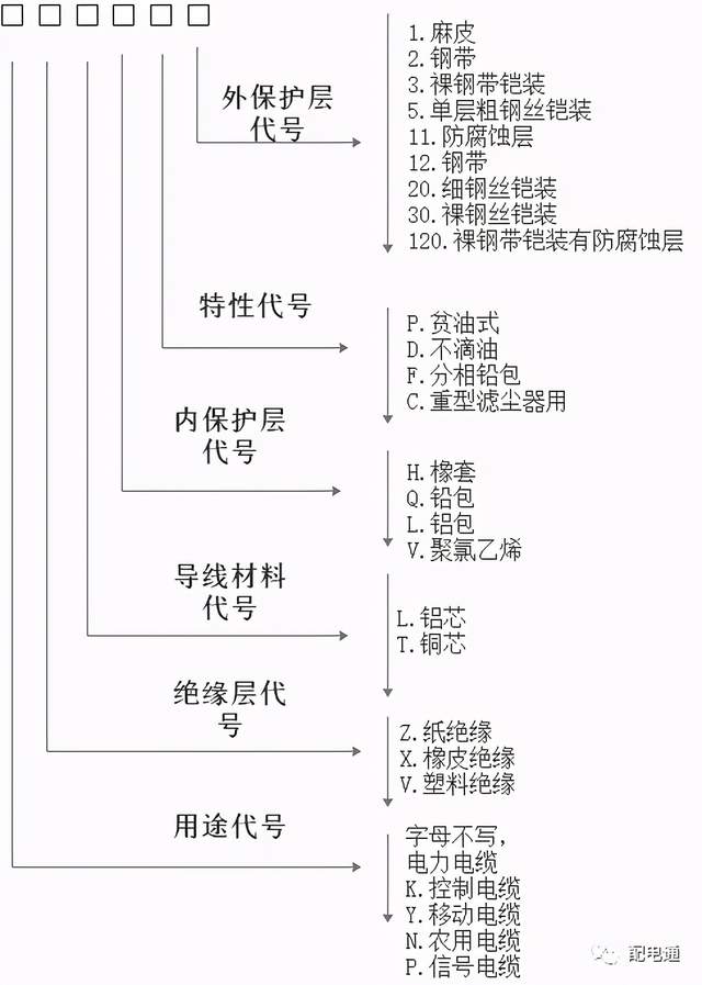 电缆在电力系统中主要分为两种,电力电缆和控制电缆。电力电缆主要用作输配电能,是电能的传输的主要介质;控制电缆则是在保护、操作回路中起到传输电流的作用。 电缆的结构一般由导线线芯、绝缘层和保护层三个部分组成,各个部分有不同的作用。导线线芯主要用来输送电流;绝缘层主要是防止电场对外界产生作用;保护层则是保护电缆在使用过程中电气性能的稳定。 电缆的使用范围广泛,应用环境复杂,因此电缆的种类多样; 电缆型号含义