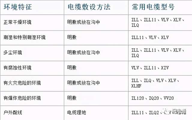 电缆选用 而电缆的选择可以根据环境和敷设方法选择: