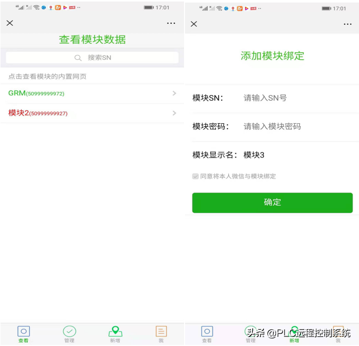 4、手机微信推送力控组态软件故障报警信息手机端配置方式 关注微信公众,将输入GRMOPC的序号和对应密码,如下图。