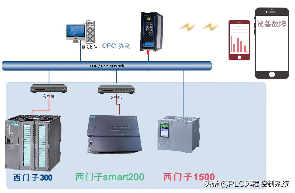 一、组态软件实现手机微信推送,短信,语音报警系统框架图 通讯的拓扑图如下:(巨控GRMOPC模块 网线直连电脑进行OPC通信)